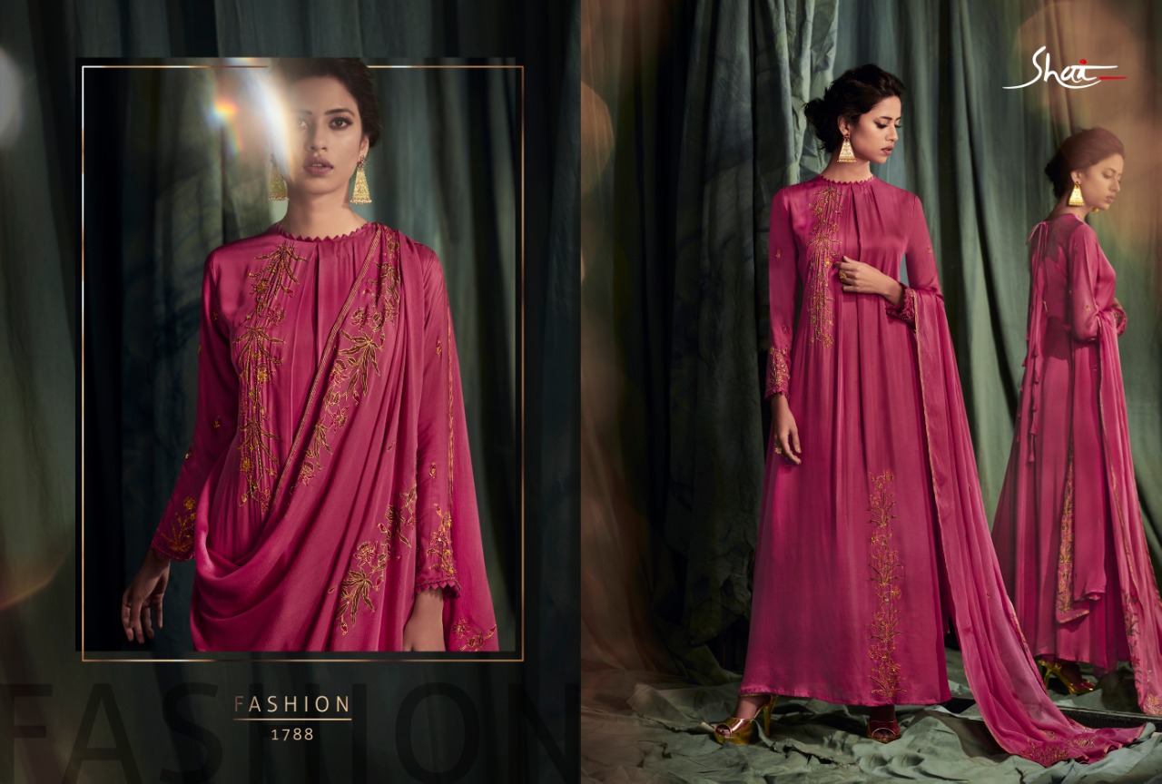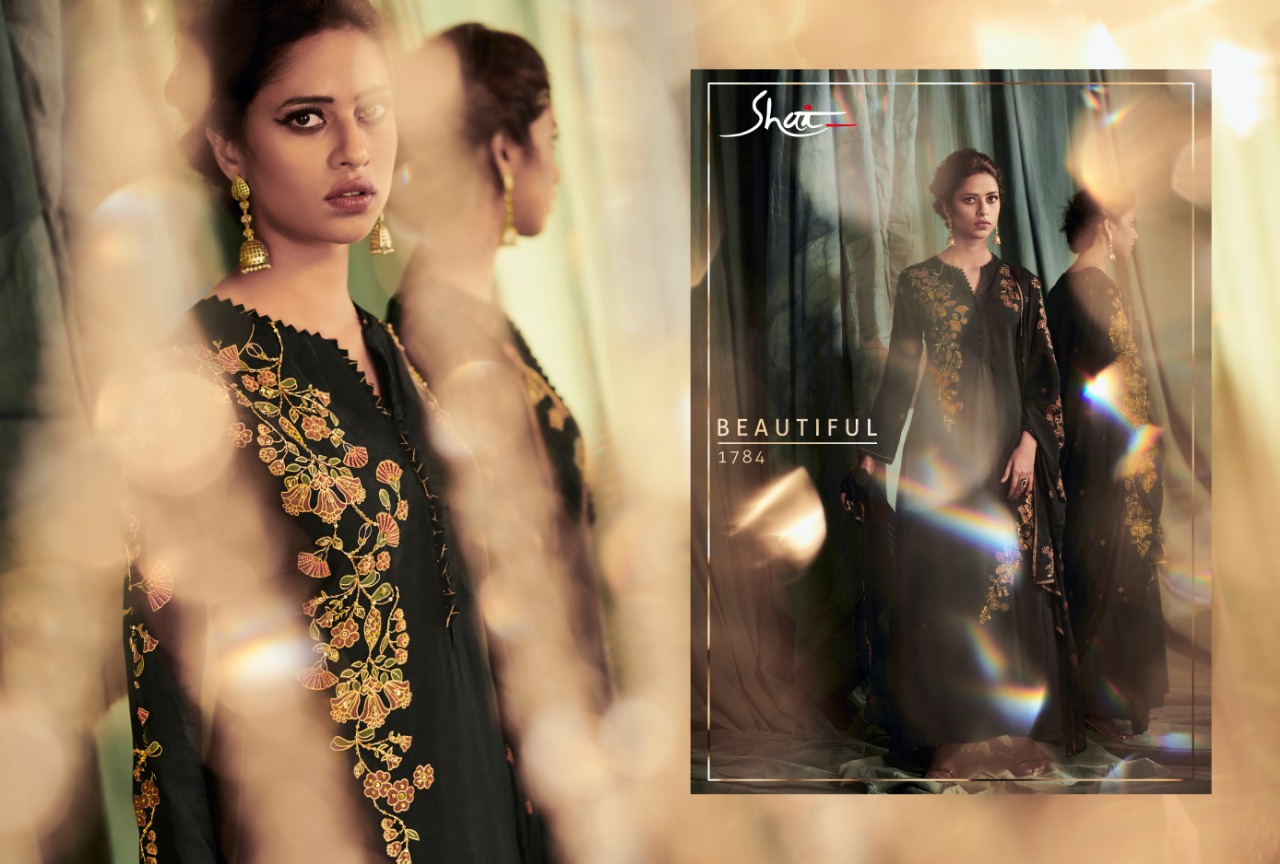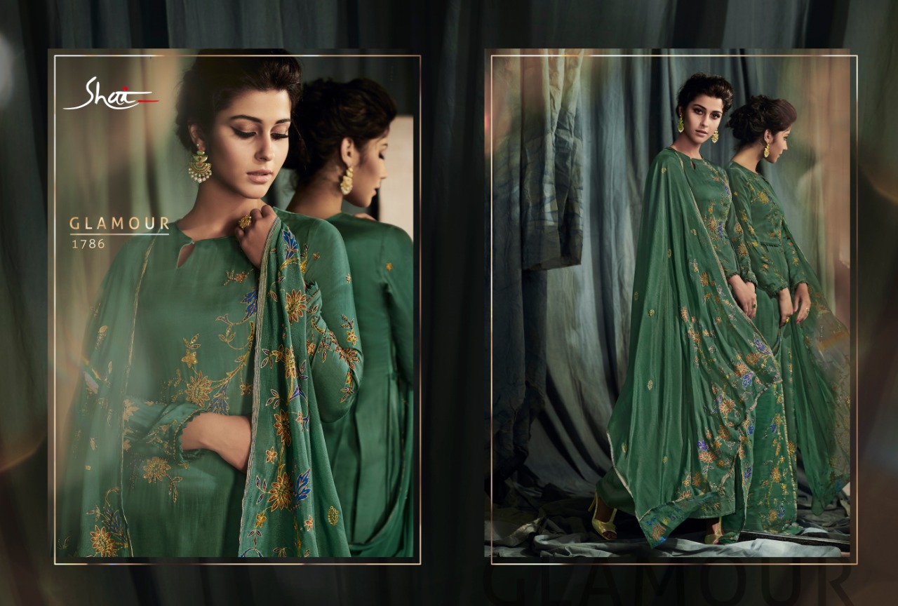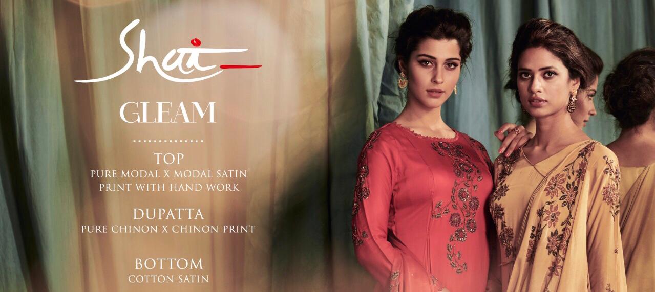 Brand - Shai . Catlog name - Glam . Series -1781 to 1788. Fabric Details Top - Pure Modal Ã? Modal Satin With Print and Handwork Bottom - Pure Cotton Satin Dupatta - Pure Chinnon With Print And 4 Side Tapping Work. Total pieces - 8 Rate - 2070 /- Set to set . GST 5 Percent Extra. Delivery from today. |