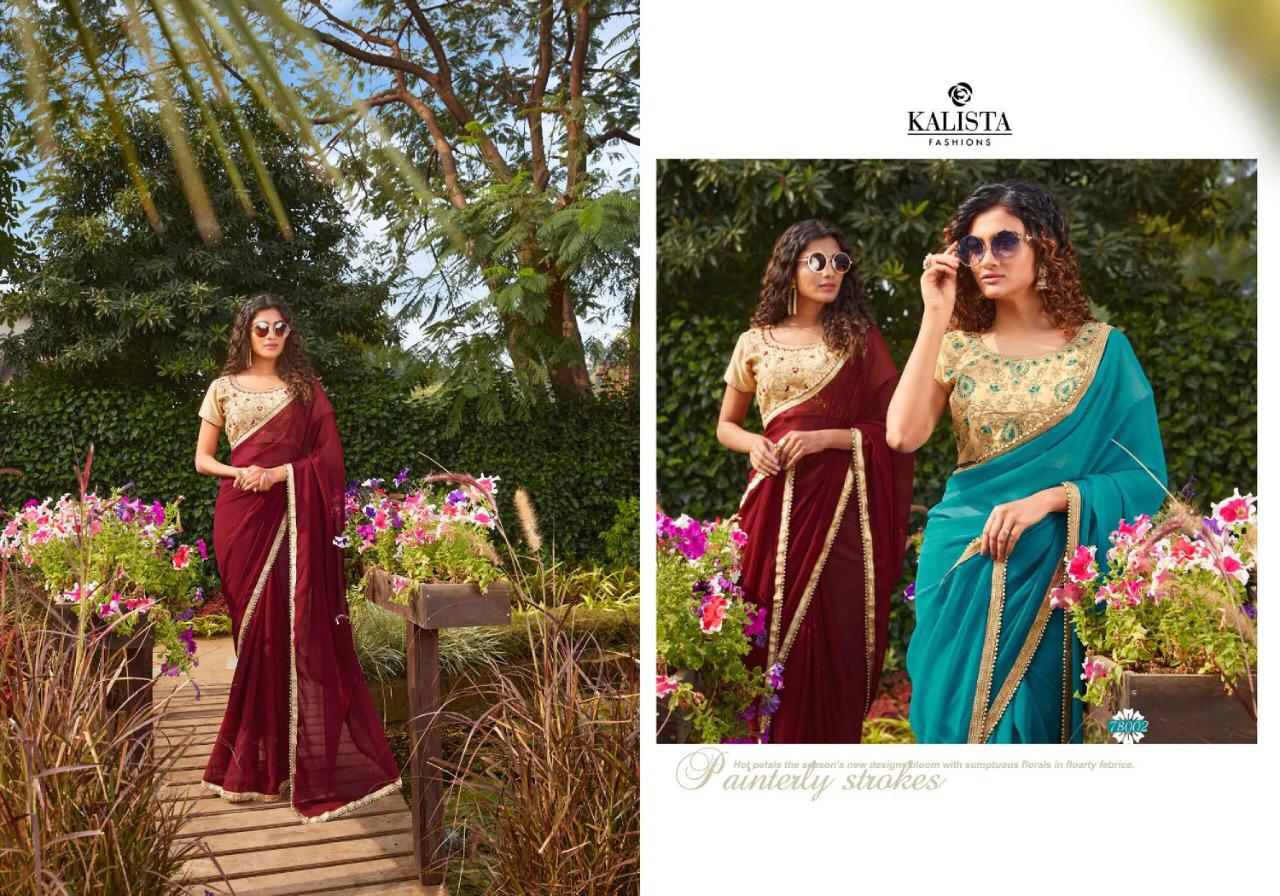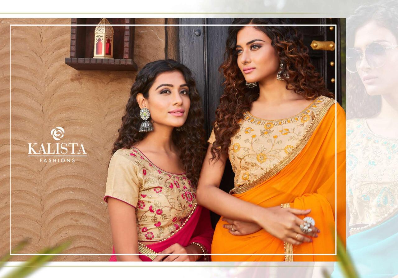 Buy Online Glam Girl By Kalista Saree Manufacturer Traders Surat 6 Pcs of Full Catalogue at Wholesale Price. Looking for Glam Girl By Kalista Saree Manufacturer Traders Surat Full Catalouge at Best Price? Buy Now Glam Girl By Kalista Saree Manufacturer Traders Surat at Wholesale Rate of Rs 3510 with Total 6 Pcs from authroized dealer and supplier of KALISTA FASHION Brand. Cost of Each piece is just only Rs 585 which is very low and affordable price to resale the product in your retail store ,This is Surat based Wholesale Supplier & Dealer of KALISTA FASHION Brand. Click on Brand name to Know more about KALISTA FASHION Brand's products.Call or Whatsapp on 9898838984 for booking or enquiry