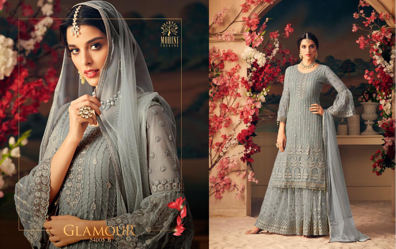 Buy Online Glamour 54 Nx 2 By Mohini 54001 Series Colours Party Wear Salwar Kameez Collection Wholesaler Surat 5 Pcs of Full Catalogue at Wholesale Price. Looking for Glamour 54 Nx 2 By Mohini 54001 Series Colours Party Wear Salwar Kameez Collection Wholesaler Surat Full Catalouge at Best Price? Buy Now Glamour 54 Nx 2 By Mohini 54001 Series Colours Party Wear Salwar Kameez Collection Wholesaler Surat at Wholesale Rate of Rs 10975 with Total 5 Pcs from authroized dealer and supplier of MOHINI FASHIONS Brand. Cost of Each piece is just only Rs 2195 which is very low and affordable price to resale the product in your retail store ,This is Surat based Wholesale Supplier & Dealer of MOHINI FASHIONS Brand. Click on Brand name to Know more about MOHINI FASHIONS Brand's products.Call or Whatsapp on 9898838984 for booking or enquiry