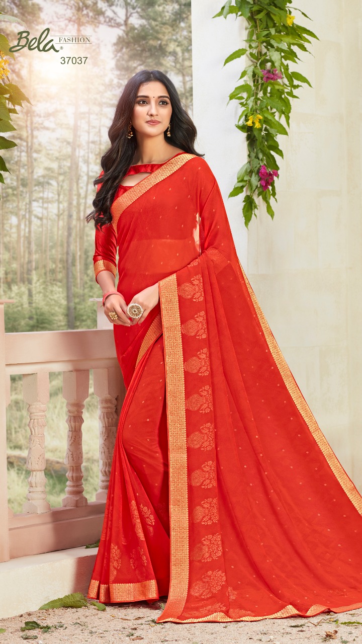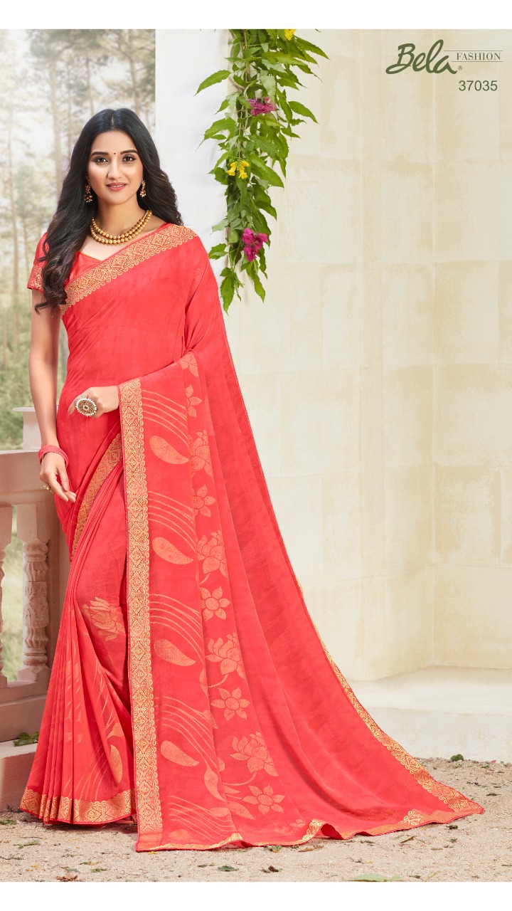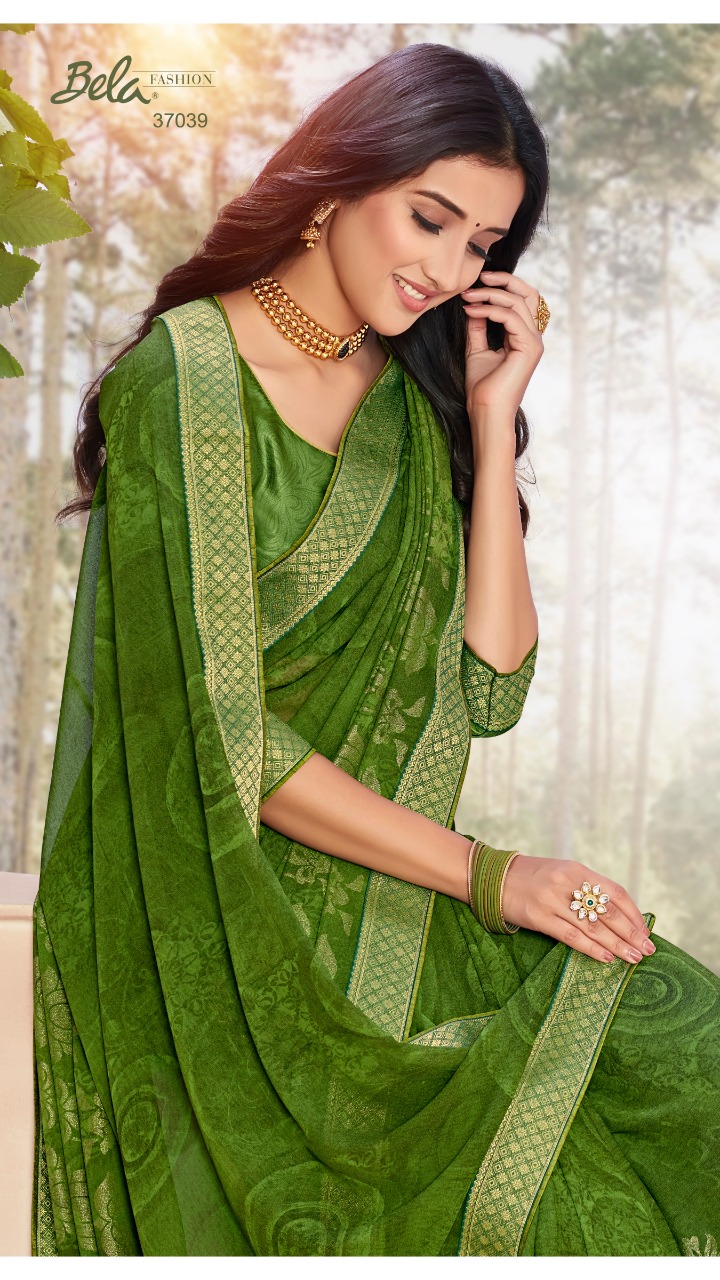 Brand - Bela . Type - Saree. Catlog name - GLAMOUR. Fabric- Georgette smoke print. Set to set. GST 5 Percent Extra. Delivery from tomorrow |
