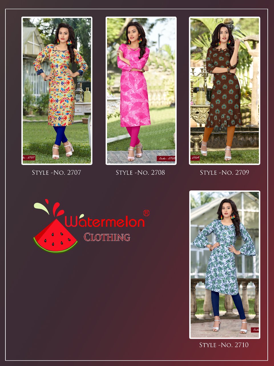 Buy Online Glamour By Watermelon Reyon Printed Kurtis Wholesale Supplier And Dealer Surat 10 Pcs of Full Catalogue at Wholesale Price. Looking for Glamour By Watermelon Reyon Printed Kurtis Wholesale Supplier And Dealer Surat Full Catalouge at Best Price? Buy Now Glamour By Watermelon Reyon Printed Kurtis Wholesale Supplier And Dealer Surat at Wholesale Rate of Rs 3550 with Total 10 Pcs from authroized dealer and supplier of WATERMELON Brand. Cost of Each piece is just only Rs 355 which is very low and affordable price to resale the product in your retail store ,This is Surat based Wholesale Supplier & Dealer of WATERMELON Brand. Click on Brand name to Know more about WATERMELON Brand's products.Call or Whatsapp on 9898838984 for booking or enquiry