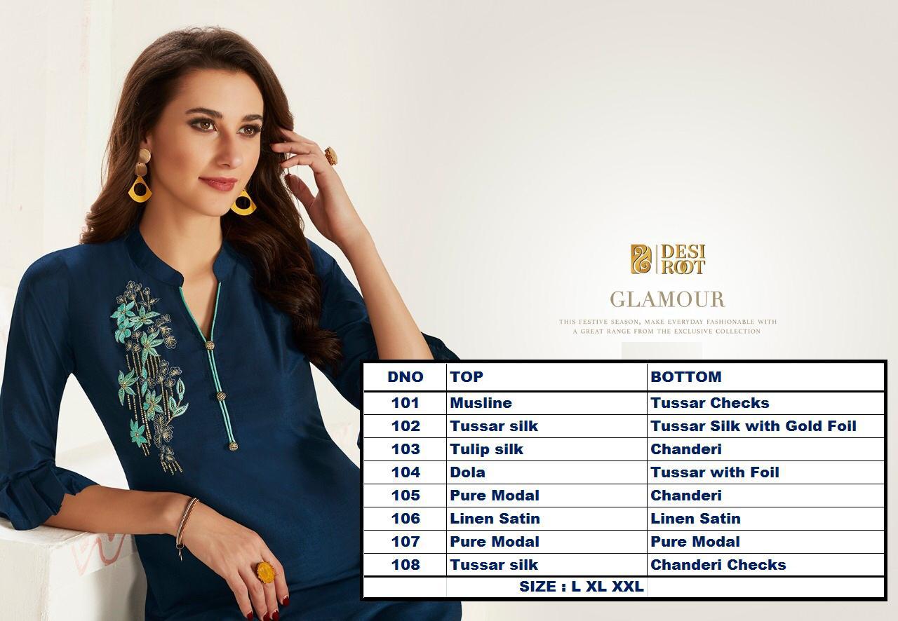 Catalog : GLAMOUR by LT Brand : DESI ROOT By L.T.Fabrics Rate : ?899 per pcs ( Avarage). Size - L , XL & XXL. Set to set. GST 5 Percent Extra. Delivery - TOMMOROW |
