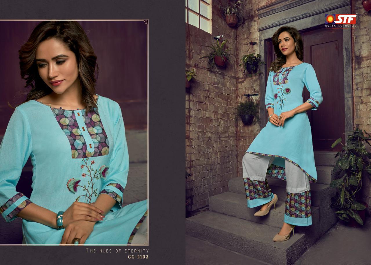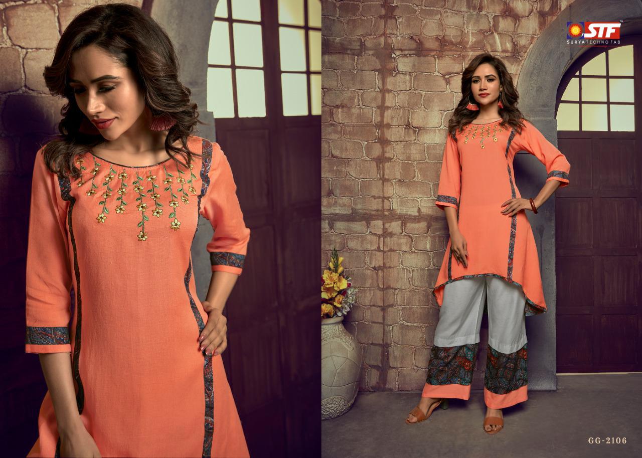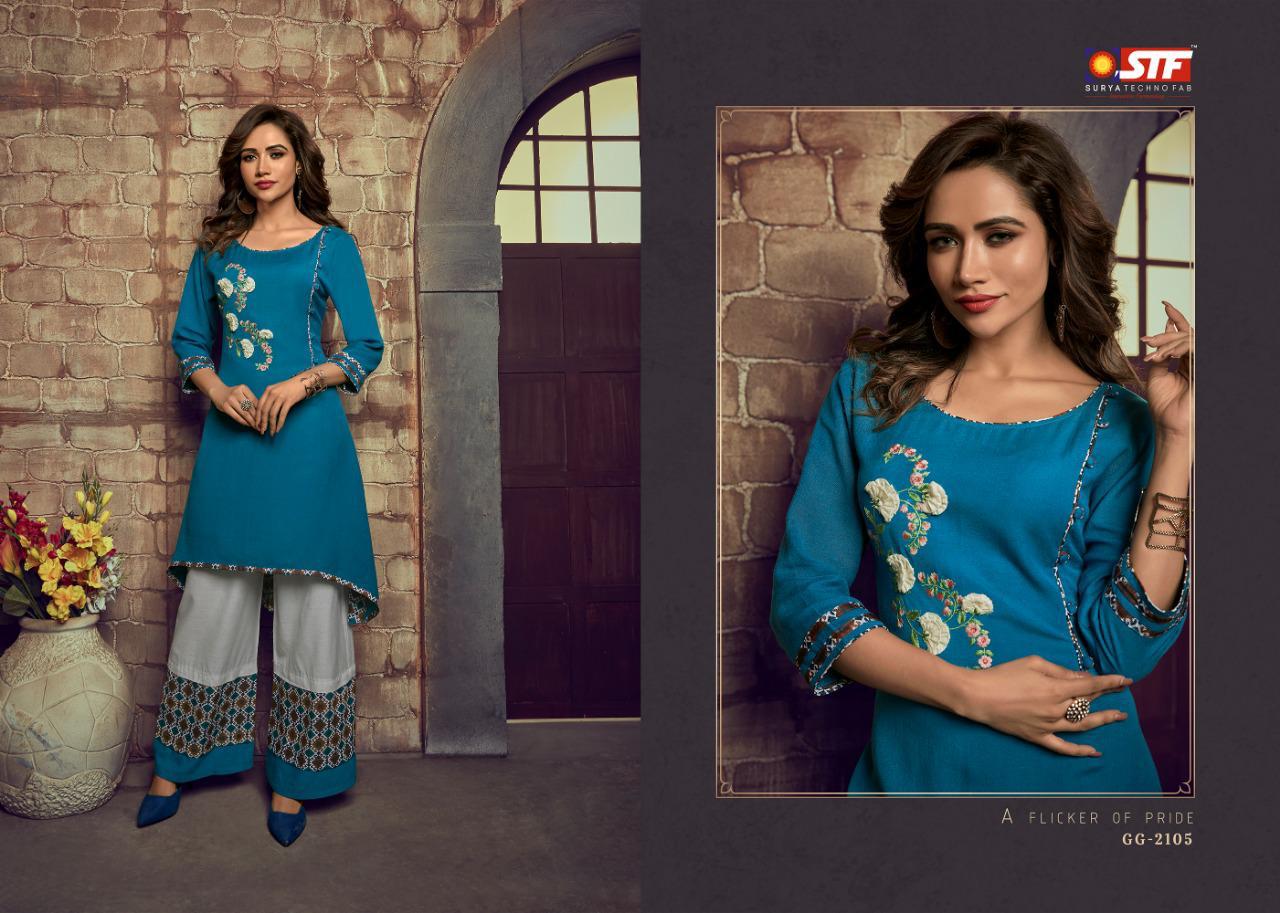 Buy Online Glamour Girl Vol 21 By Stf Reyon Kurtis With Plazzo Wholesale Supplier Surat 8 Pcs of Full Catalogue at Wholesale Price. Looking for Glamour Girl Vol 21 By Stf Reyon Kurtis With Plazzo Wholesale Supplier Surat Full Catalouge at Best Price? Buy Now Glamour Girl Vol 21 By Stf Reyon Kurtis With Plazzo Wholesale Supplier Surat at Wholesale Rate of Rs 5920 with Total 8 Pcs from authroized dealer and supplier of Brand. Cost of Each piece is just only Rs 740 which is very low and affordable price to resale the product in your retail store ,This is Surat based Wholesale Supplier & Dealer of Brand. Click on Brand name to Know more about Brand's products.Call or Whatsapp on 9898838984 for booking or enquiry