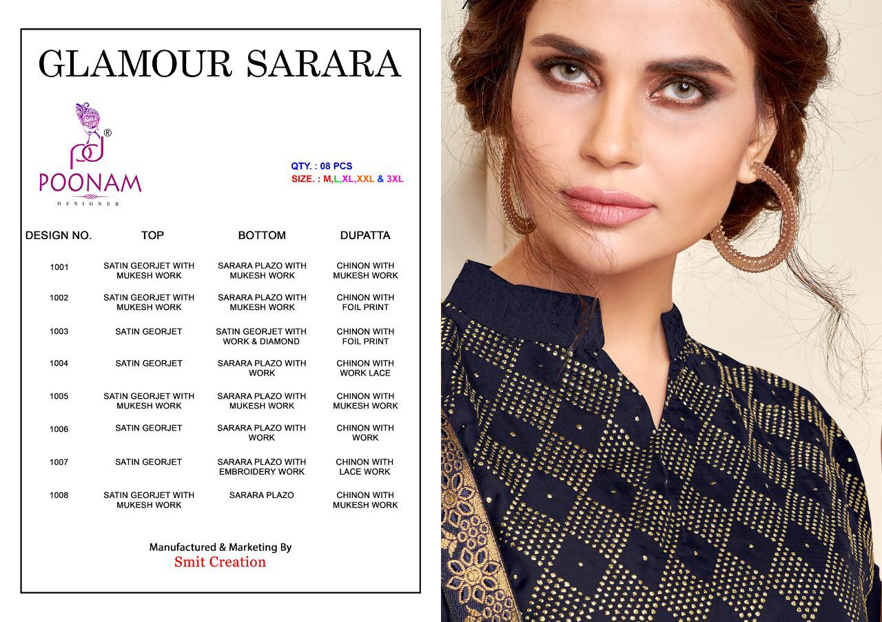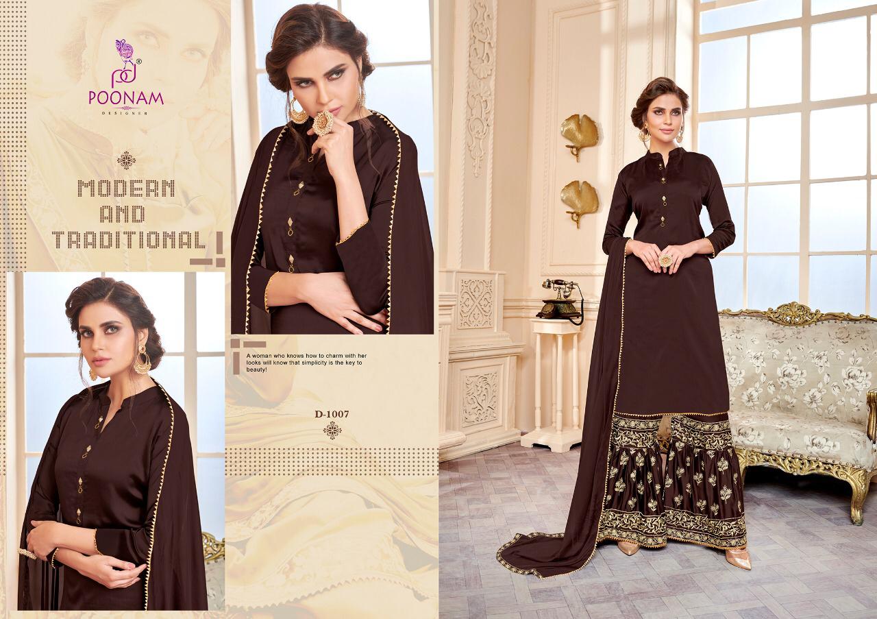 Buy Online Glamour Sarara By Poonam Series 1001 To 1008 Designer Ready To Wear Sarara Collection Wholesale Supplier Surat 8 Pcs of Full Catalogue at Wholesale Price. Looking for Glamour Sarara By Poonam Series 1001 To 1008 Designer Ready To Wear Sarara Collection Wholesale Supplier Surat Full Catalouge at Best Price? Buy Now Glamour Sarara By Poonam Series 1001 To 1008 Designer Ready To Wear Sarara Collection Wholesale Supplier Surat at Wholesale Rate of Rs 10392 with Total 8 Pcs from authroized dealer and supplier of Poonam designer Brand. Cost of Each piece is just only Rs 1299 which is very low and affordable price to resale the product in your retail store ,This is Surat based Wholesale Supplier & Dealer of Poonam designer Brand. Click on Brand name to Know more about Poonam designer Brand's products.Call or Whatsapp on 9898838984 for booking or enquiry