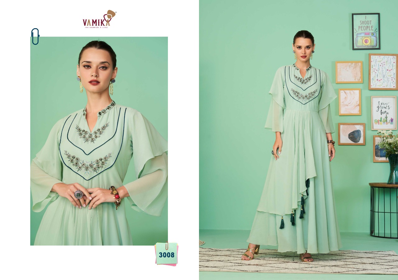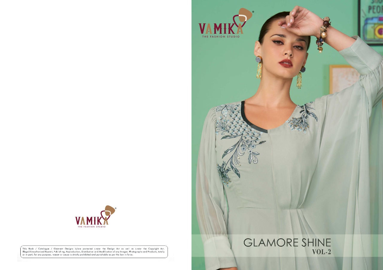 Buy Online Glamour Shine Vol 2 By Vamika The Designer Studio Designer Fancy Long Kurti Wholesaler Supplier From Surat 6 Pcs of Full Catalogue at Wholesale Price. Looking for Glamour Shine Vol 2 By Vamika The Designer Studio Designer Fancy Long Kurti Wholesaler Supplier From Surat Full Catalouge at Best Price? Buy Now Glamour Shine Vol 2 By Vamika The Designer Studio Designer Fancy Long Kurti Wholesaler Supplier From Surat at Wholesale Rate of Rs 5370 with Total 6 Pcs from authroized dealer and supplier of Brand. Cost of Each piece is just only Rs 895 which is very low and affordable price to resale the product in your retail store ,This is Surat based Wholesale Supplier & Dealer of Brand. Click on Brand name to Know more about Brand's products.Call or Whatsapp on 9898838984 for booking or enquiry