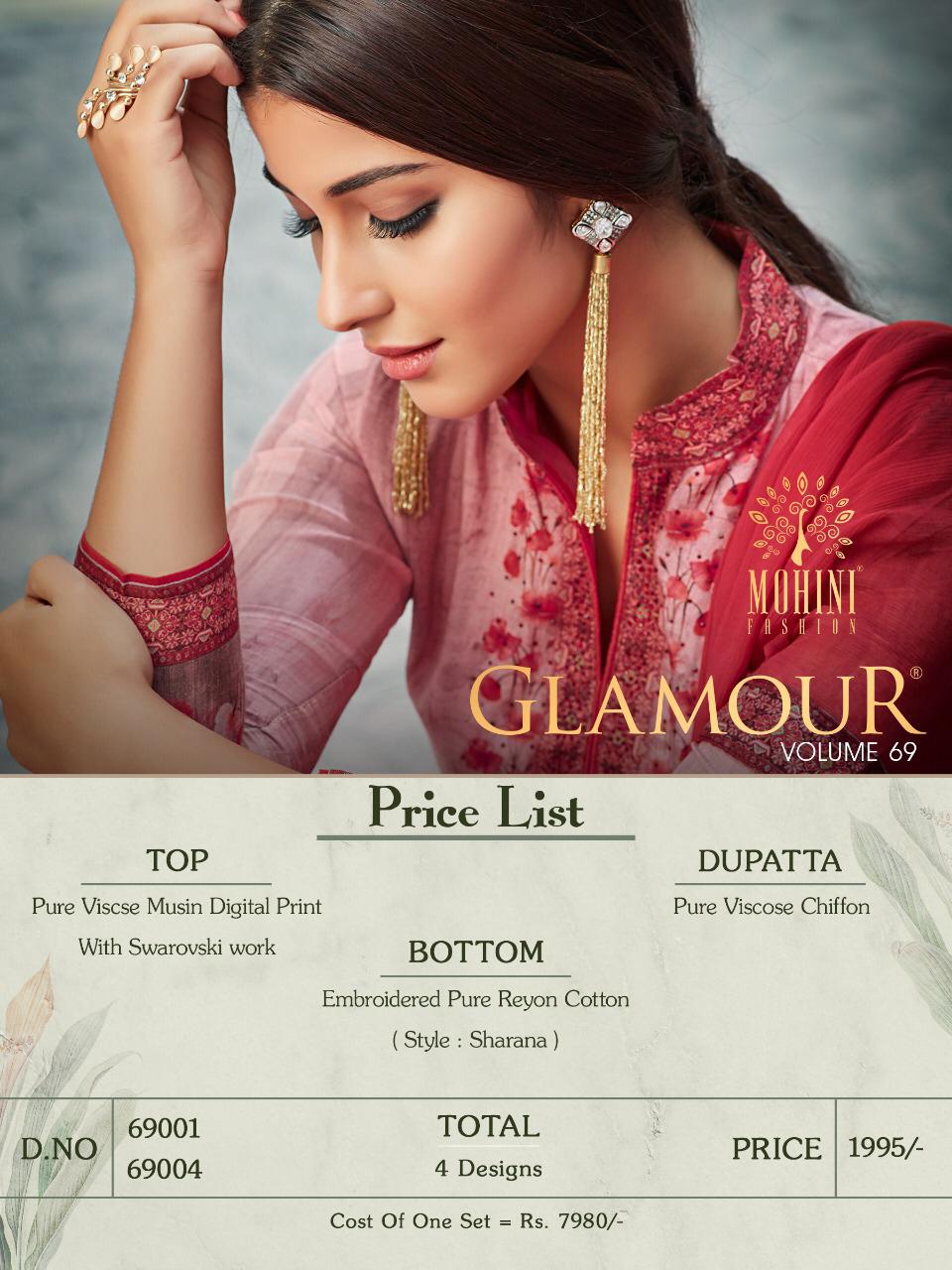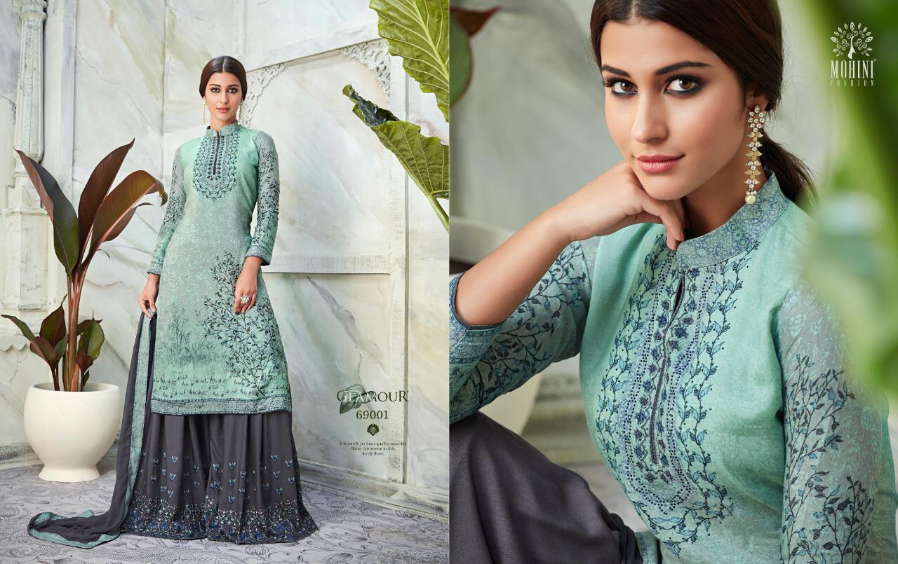 Buy Online Glamour Vol 69 By Mohini Fashion Series 69001 To 69004 Designer Party Wear Sharara Suits Wholesale Supplier And Dealer Surat 4 Pcs of Full Catalogue at Wholesale Price. Looking for Glamour Vol 69 By Mohini Fashion Series 69001 To 69004 Designer Party Wear Sharara Suits Wholesale Supplier And Dealer Surat Full Catalouge at Best Price? Buy Now Glamour Vol 69 By Mohini Fashion Series 69001 To 69004 Designer Party Wear Sharara Suits Wholesale Supplier And Dealer Surat at Wholesale Rate of Rs 7980 with Total 4 Pcs from authroized dealer and supplier of MOHINI FASHIONS Brand. Cost of Each piece is just only Rs 1995 which is very low and affordable price to resale the product in your retail store ,This is Surat based Wholesale Supplier & Dealer of MOHINI FASHIONS Brand. Click on Brand name to Know more about MOHINI FASHIONS Brand's products.Call or Whatsapp on 9898838984 for booking or enquiry