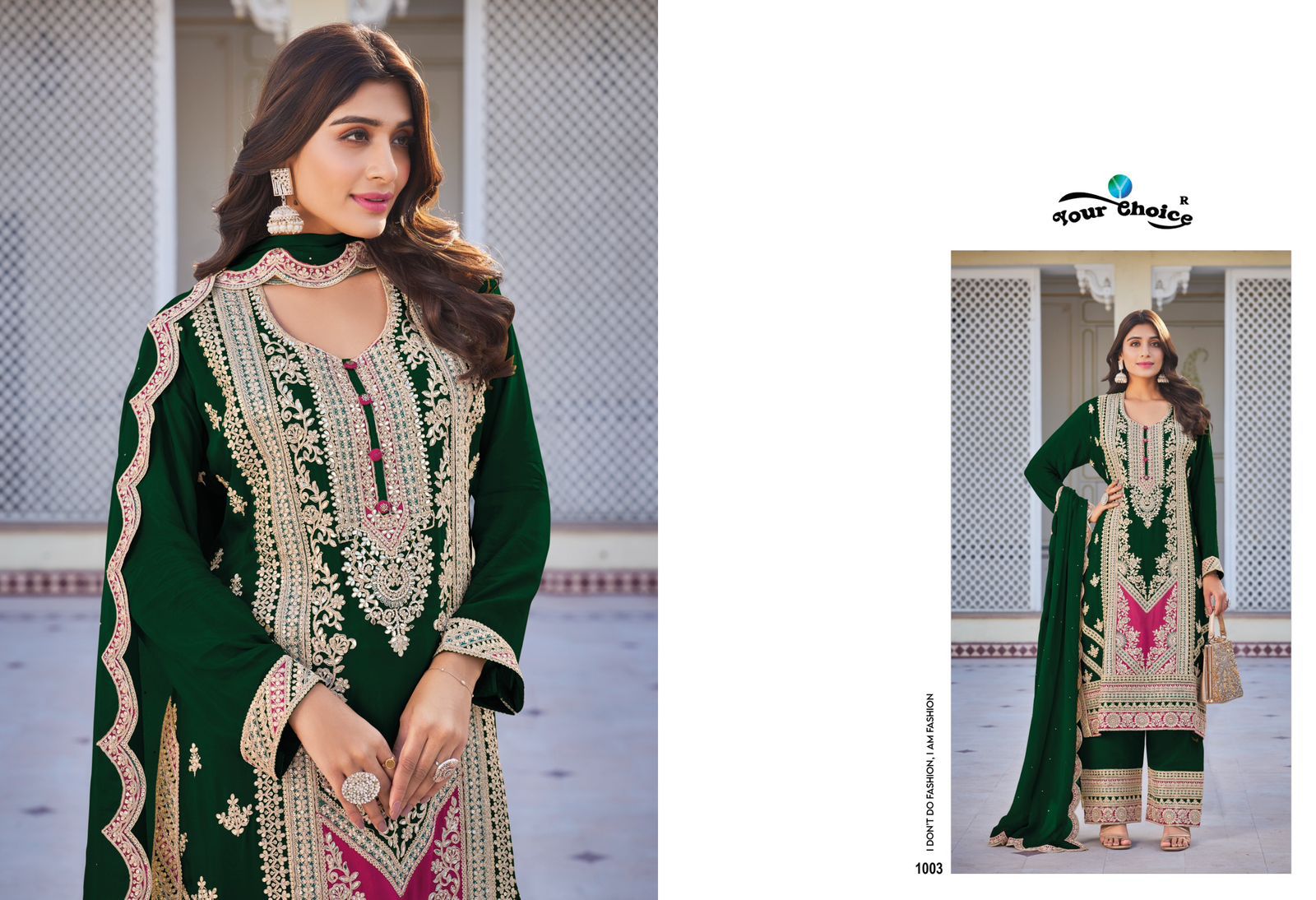 Buy Online Glamup By Your Choice Eid Collection Manufacturer Surat 4 Pcs of Full Catalogue at Wholesale Price. Looking for Glamup By Your Choice Eid Collection Manufacturer Surat Full Catalouge at Best Price? Buy Now Glamup By Your Choice Eid Collection Manufacturer Surat at Wholesale Rate of Rs 11580 with Total 4 Pcs from authroized dealer and supplier of YOUR CHOICE Brand. Cost of Each piece is just only Rs 2895 which is very low and affordable price to resale the product in your retail store ,This is Surat based Wholesale Supplier & Dealer of YOUR CHOICE Brand. Click on Brand name to Know more about YOUR CHOICE Brand's products.Call or Whatsapp on 9898838984 for booking or enquiry