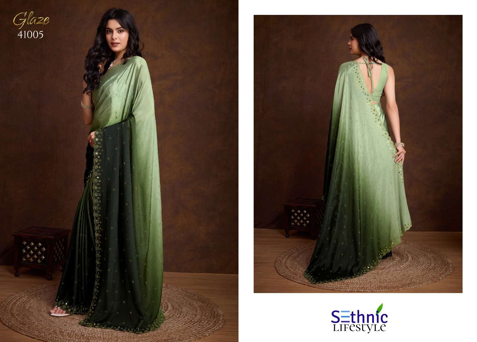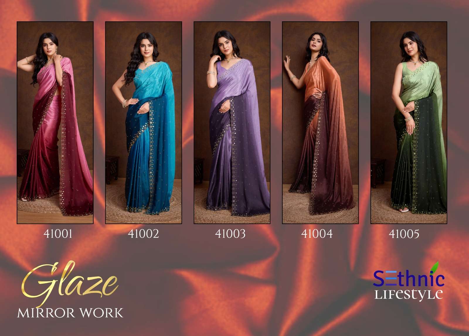 GLAZE SERIES 41001 TO 41005 by SETHNIC Lifestyle Chinnon saree collection manufacturer surat