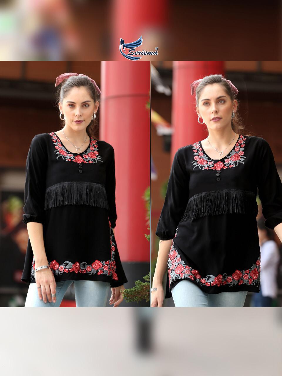 Sir / Madam It�s not about brand, it�s about style       * SERIEMA* Matching style and class with luxury and comfort....! Simple Style to match your ? with      *FANCY TOP*     *SERIEMA�* Always willing to comfort and Exclusive quality as unique as you.  CATALOGUE NAME         *GLAZIER-HITS*  Brand :  *SERIEMA®*        Fabric ? *TOP* :-    *HEAVY RAYON 14KG*   *WITH STYLISH EMBROIDERY * *FULLY STYLISH SELVESS WITH CLASSY LOOK* * CROCHET ? LACE* SIZE : *S*  *M*  *L* *XL* *XXL*      *36* *38* *40* *42* *44* * RATE ?:- 465* *5%GST EXTRA* *DISPATCH NO:- 27JAN* Set to Set *#Merging style with elegance* *#Try it, wear it, love it.* *#Unbeatable_price* *#Summer_collection* *Like and share with your customers ... l* Regards *SERIEMA* |