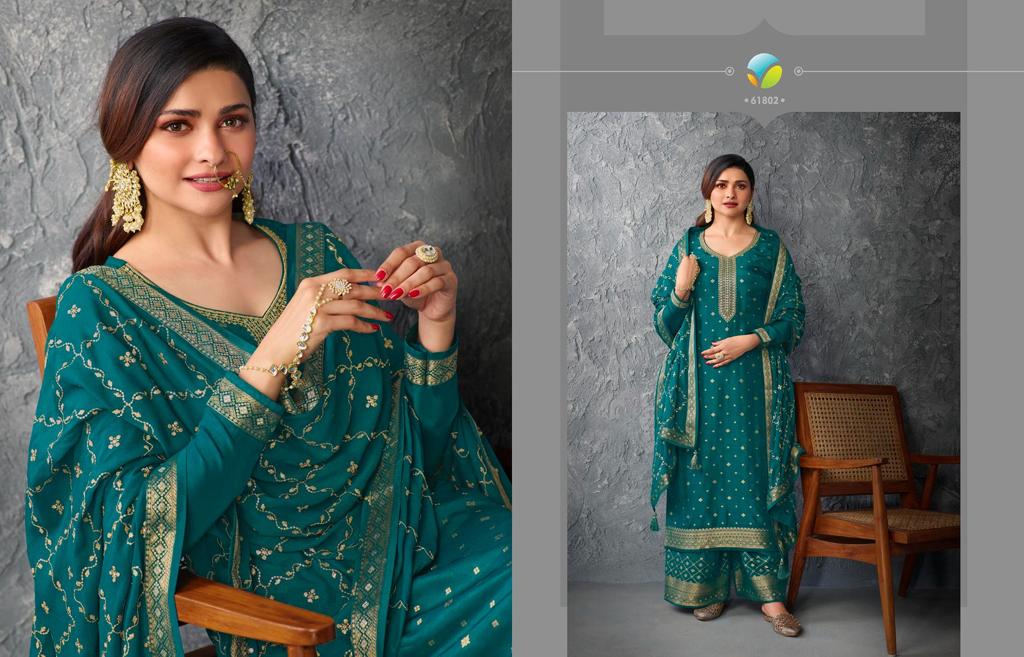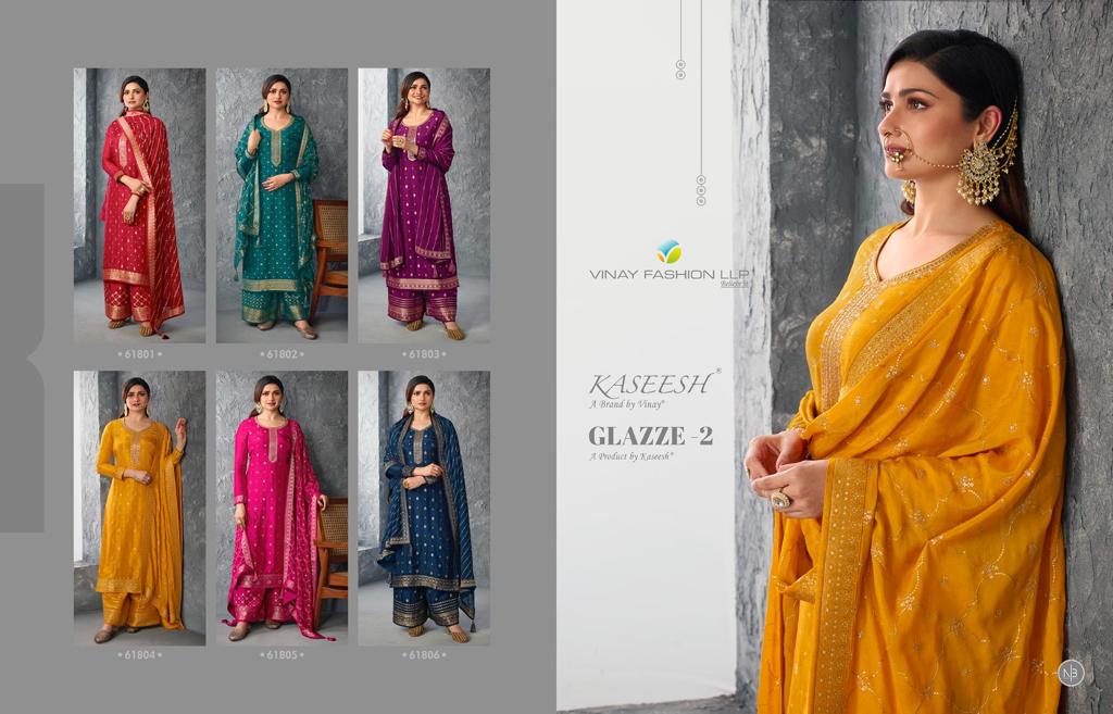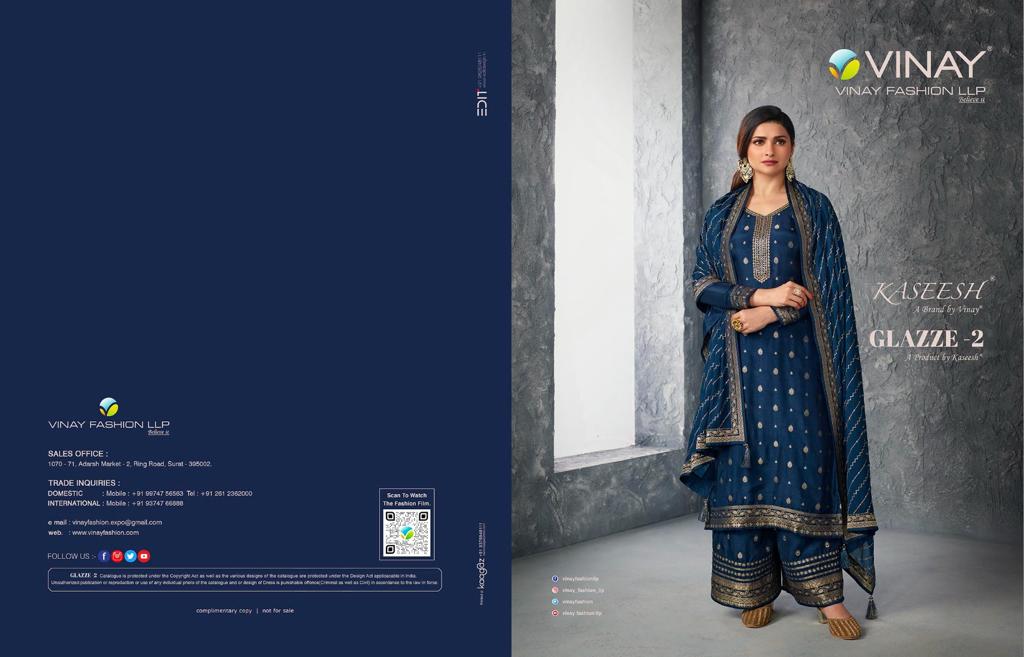 Glazze Vol 2 By Vinay Fashion Pure Dola Jacquard Suits Singles Avilable Dealer From Surat