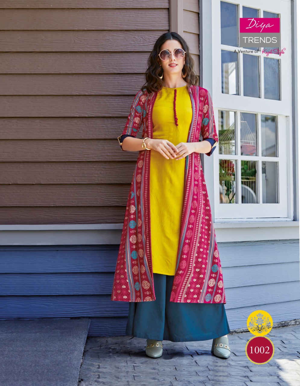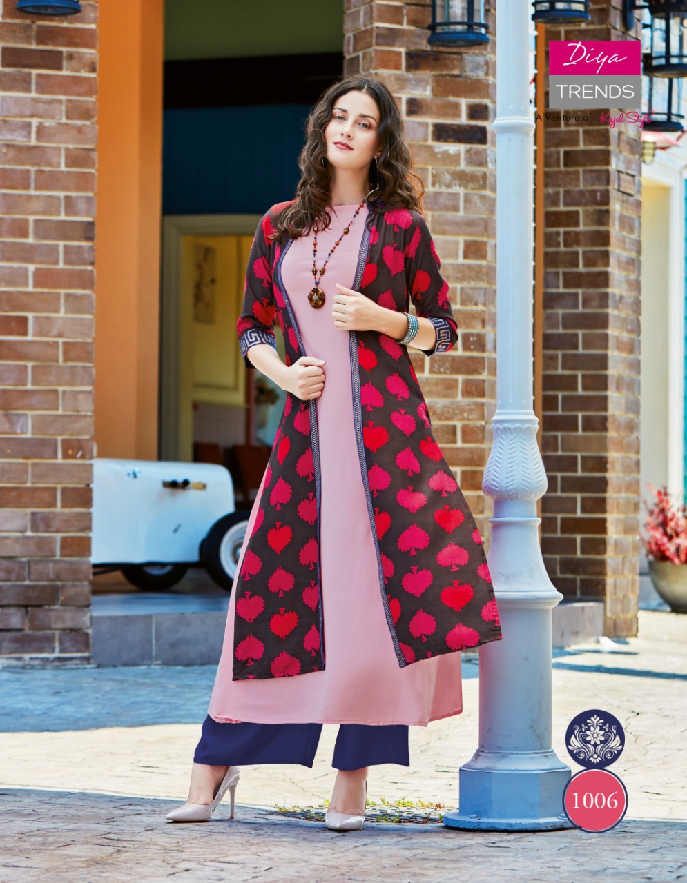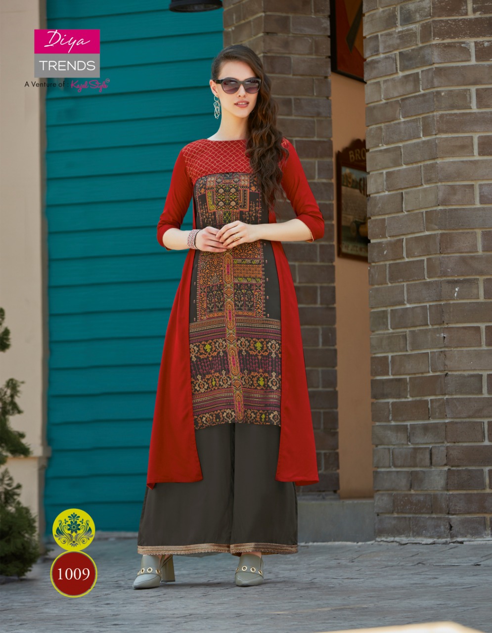 Globus City Vol 1 By Diya Trendz Reyon Kurti With Shurg And Pant Wholesale Supplier And Dealer Surat
