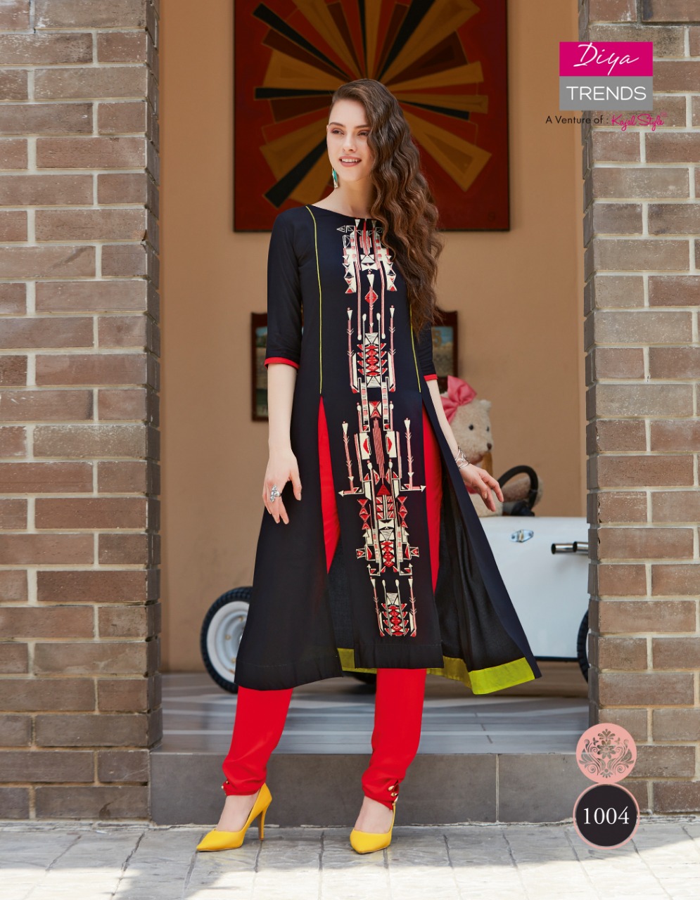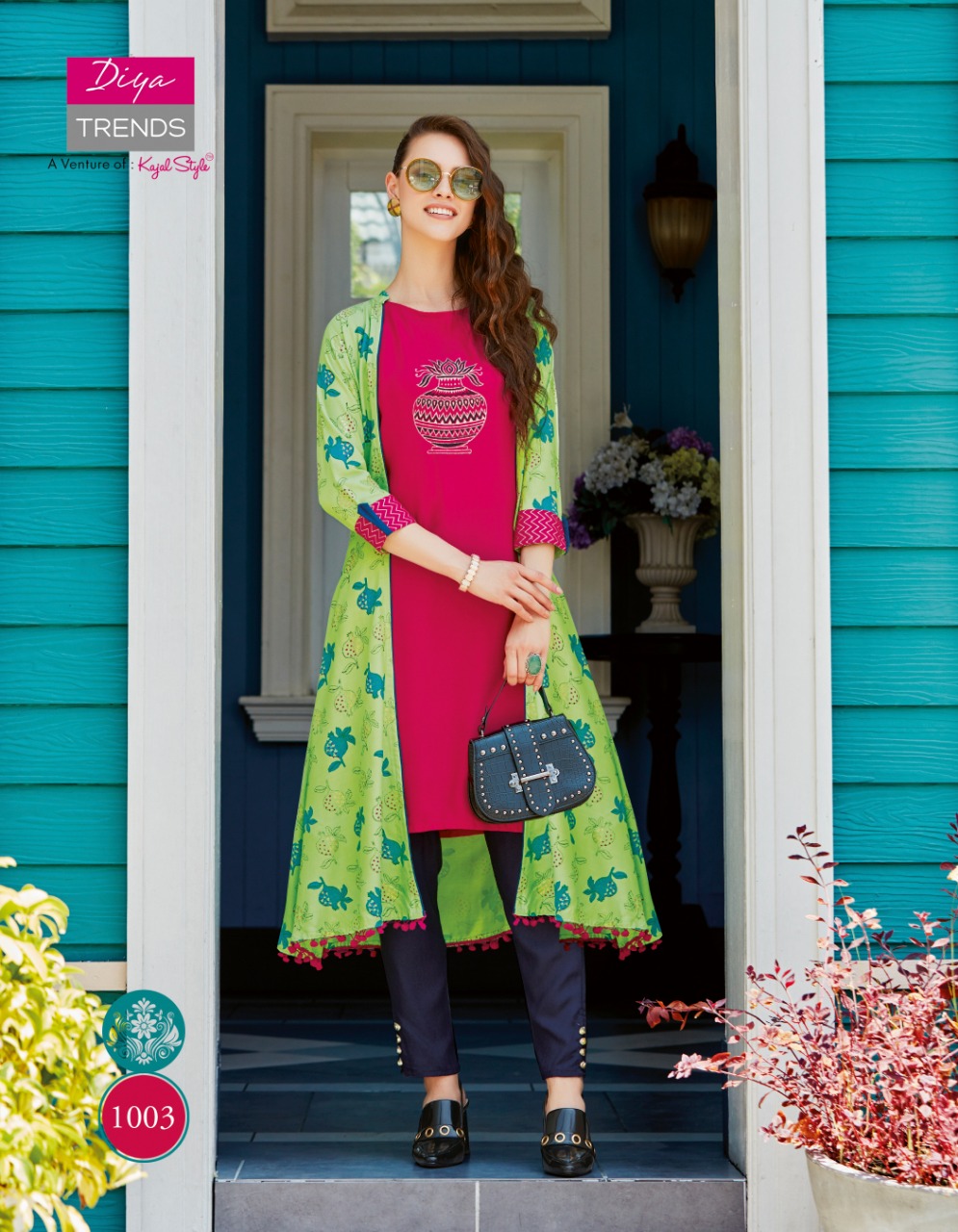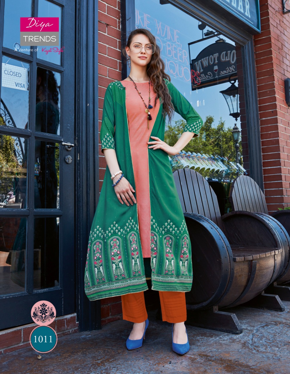 Globus City Vol 1 By Diya Trendz Reyon Kurti With Shurg And Pant Wholesale Supplier And Dealer Surat