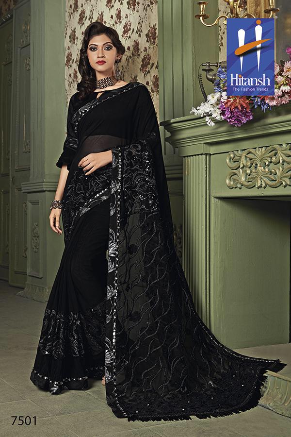 Glorina By Hitansh Series 7501 Fancy Party Wear Sarees Wholesale Supplier Gujarat