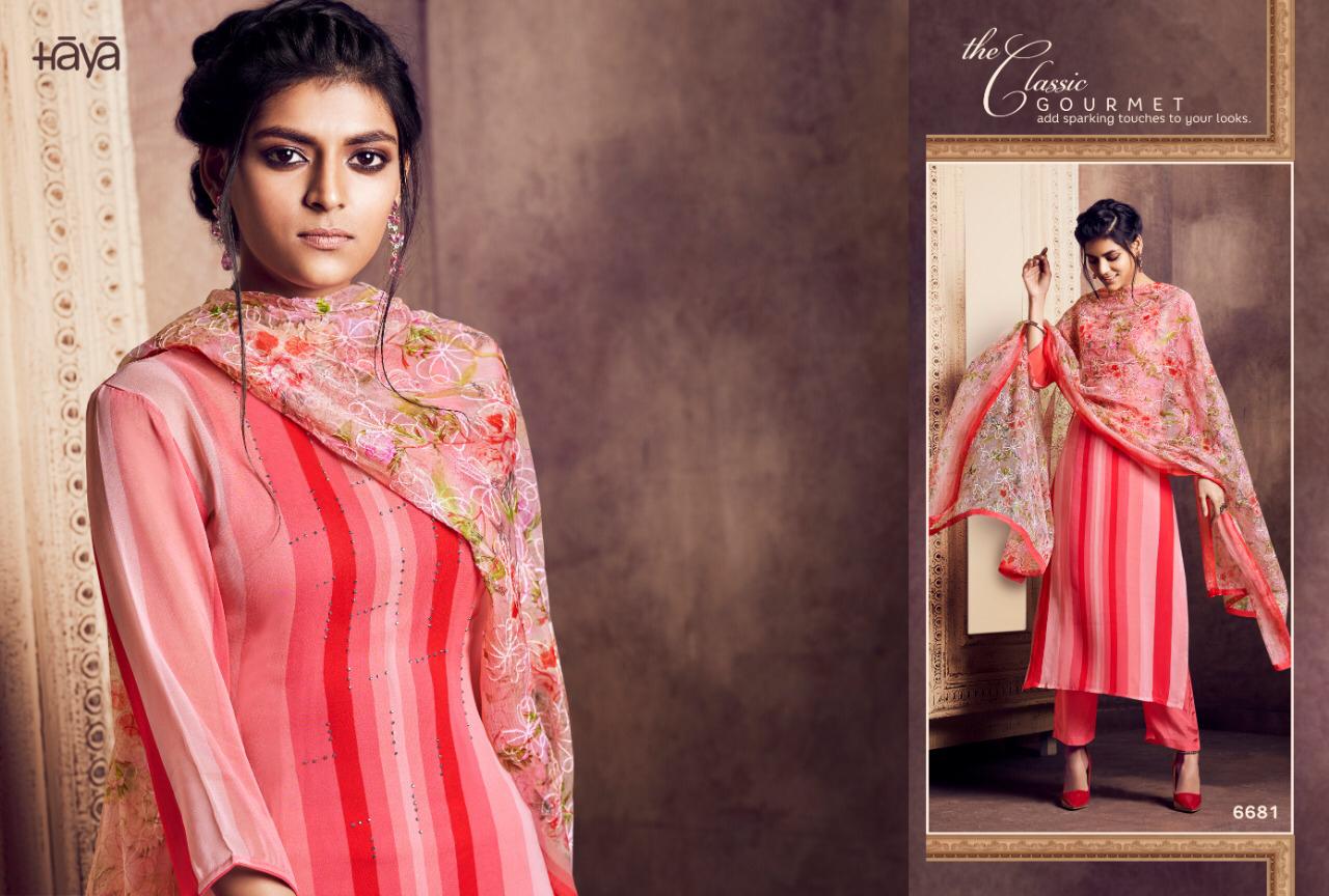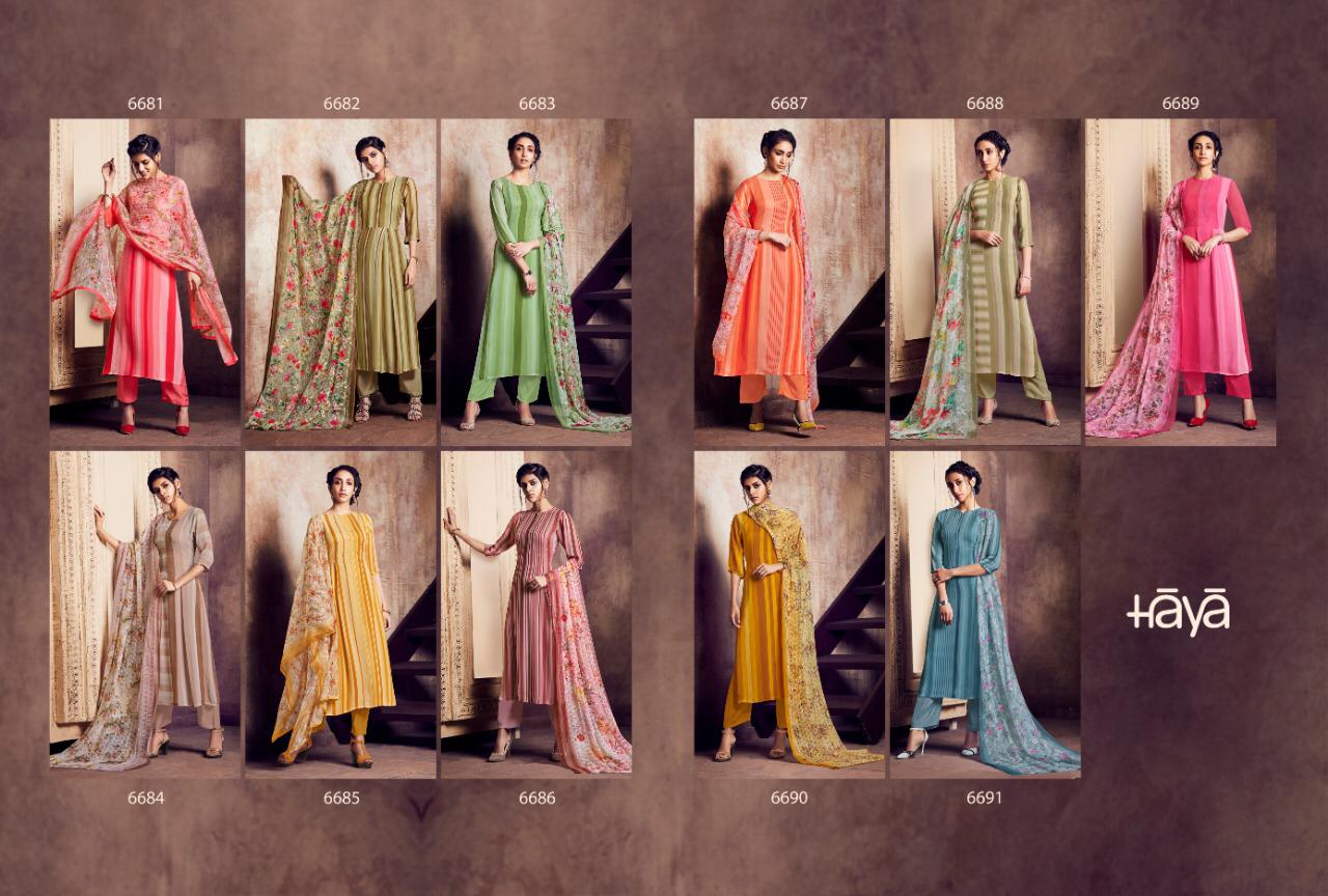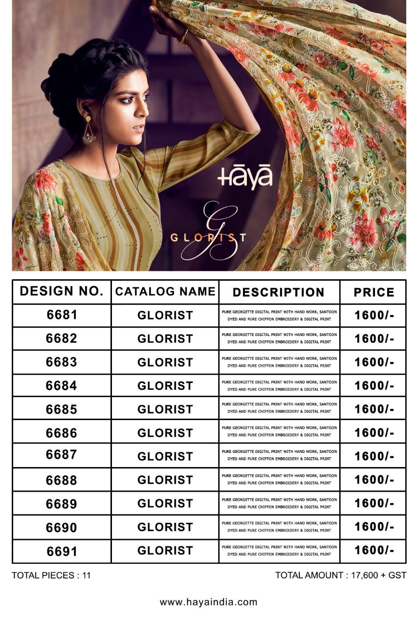 Buy Online Glorist By Haya 6681 Series Fancy Pure Georgette Digital Printed Salwar Kameez Catlog Wholesaler Surat 11 Pcs of Full Catalogue at Wholesale Price. Looking for Glorist By Haya 6681 Series Fancy Pure Georgette Digital Printed Salwar Kameez Catlog Wholesaler Surat Full Catalouge at Best Price? Buy Now Glorist By Haya 6681 Series Fancy Pure Georgette Digital Printed Salwar Kameez Catlog Wholesaler Surat at Wholesale Rate of Rs 17600 with Total 11 Pcs from authroized dealer and supplier of HAYA Brand. Cost of Each piece is just only Rs 1600 which is very low and affordable price to resale the product in your retail store ,This is Surat based Wholesale Supplier & Dealer of HAYA Brand. Click on Brand name to Know more about HAYA Brand's products.Call or Whatsapp on 9898838984 for booking or enquiry