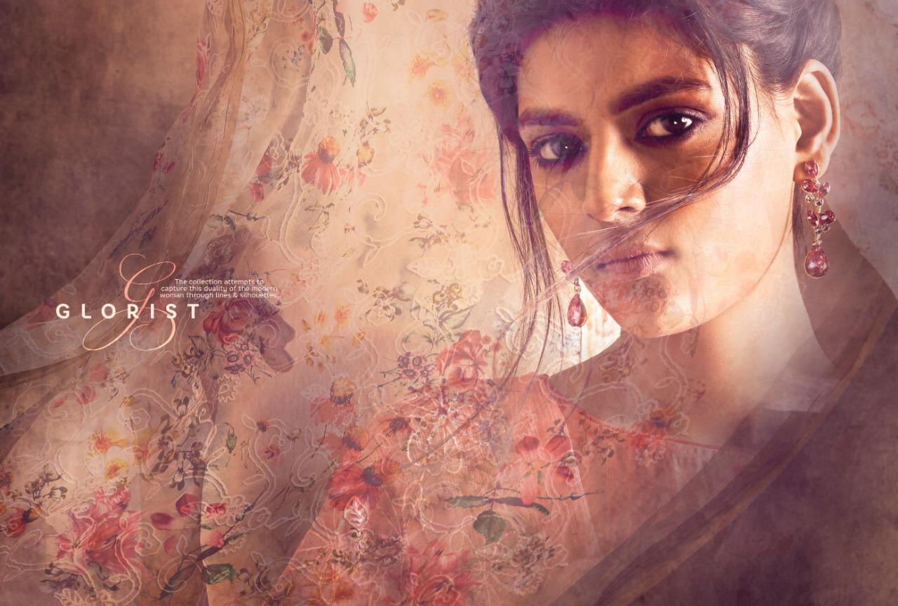 Brand - Hata . Catlog name - GLORIST. Series -6681 to 6691. 11 Design Singal Colour Fabric Details Top = Pure Geogrette Digital Print With Hand Work Bottom = Santoon Dyed(5 mts) Dupatta = Pure Chiffon Embroidery & Digital Print Total pieces = 11 Rate = 1600/- Delivery 5-6 days . Set To Set. GST 5 Percent Extra |