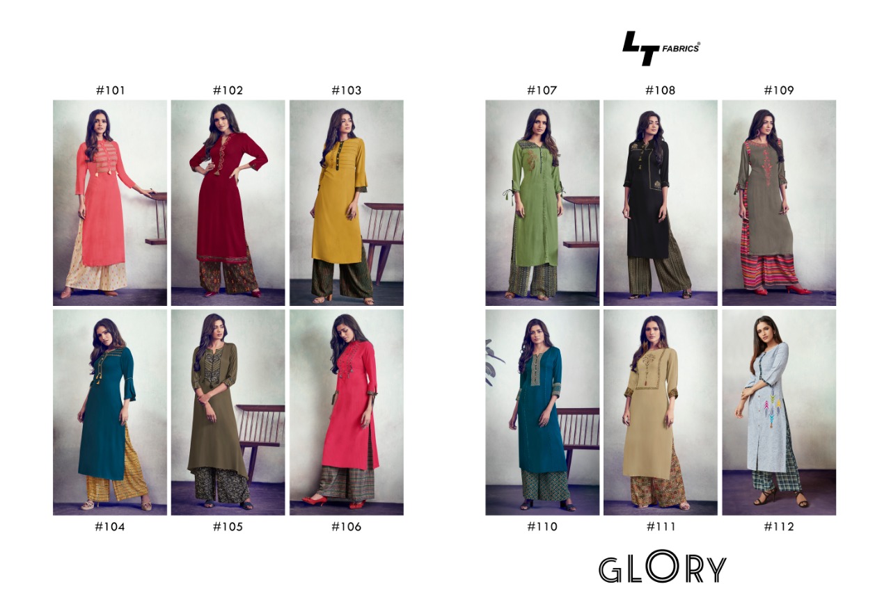 Glory By Lt Fabrics 101 Series Fancy Reyon Top And Bottom Reyon Printed Catlog Wholesale Dealer Surat