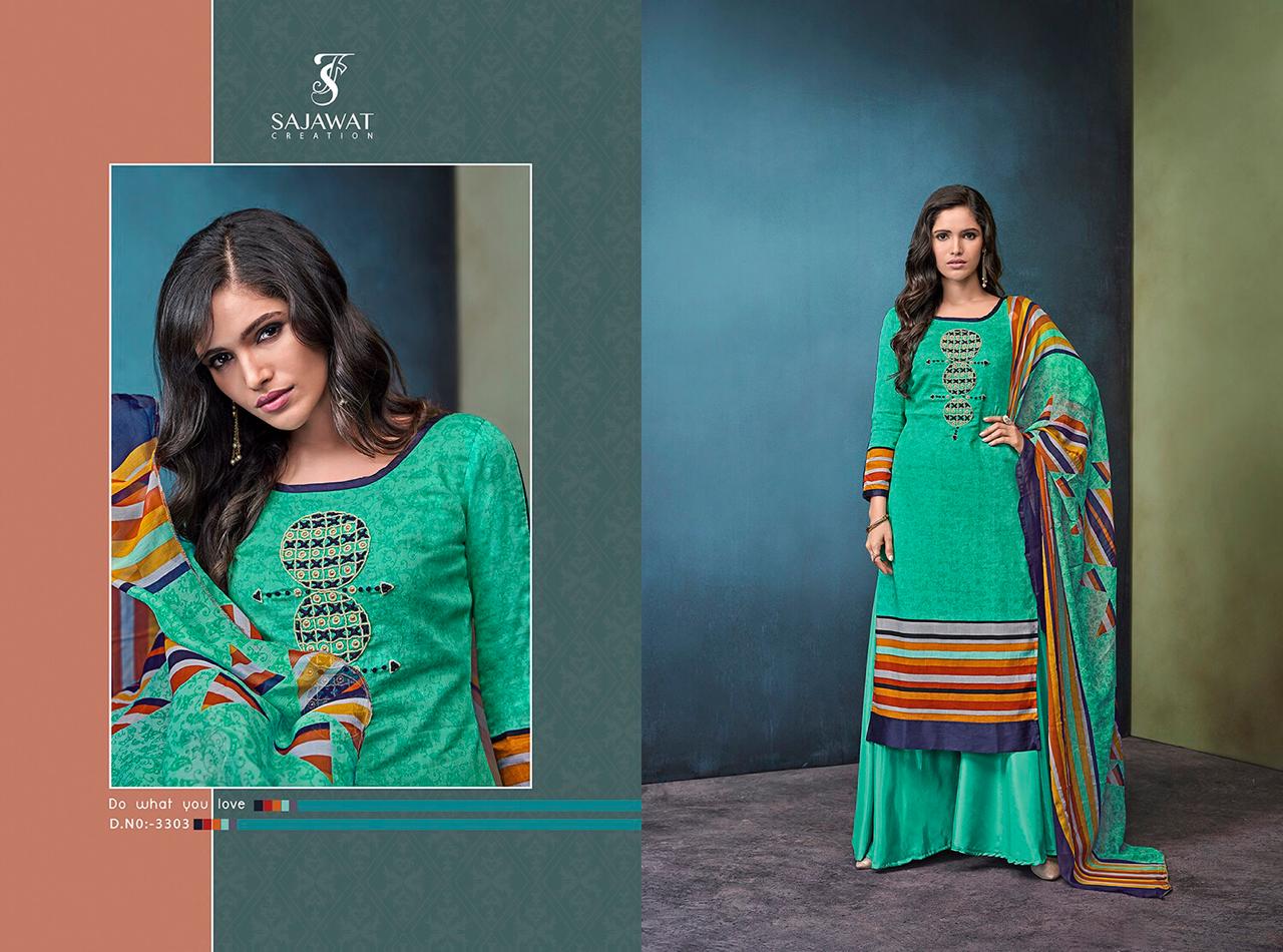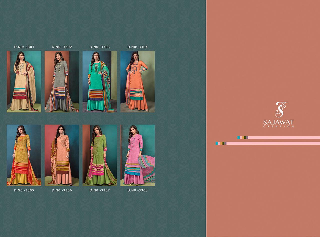 Buy Online Glory By Sajawat Creation 3301 Series Pure Heavy Pashmina Salwar Kameez Catlog Wholesale Dealer Surat 8 Pcs of Full Catalogue at Wholesale Price. Looking for Glory By Sajawat Creation 3301 Series Pure Heavy Pashmina Salwar Kameez Catlog Wholesale Dealer Surat Full Catalouge at Best Price? Buy Now Glory By Sajawat Creation 3301 Series Pure Heavy Pashmina Salwar Kameez Catlog Wholesale Dealer Surat at Wholesale Rate of Rs 5848 with Total 8 Pcs from authroized dealer and supplier of SAJAWAT Brand. Cost of Each piece is just only Rs 731 which is very low and affordable price to resale the product in your retail store ,This is Surat based Wholesale Supplier & Dealer of SAJAWAT Brand. Click on Brand name to Know more about SAJAWAT Brand's products.Call or Whatsapp on 9898838984 for booking or enquiry