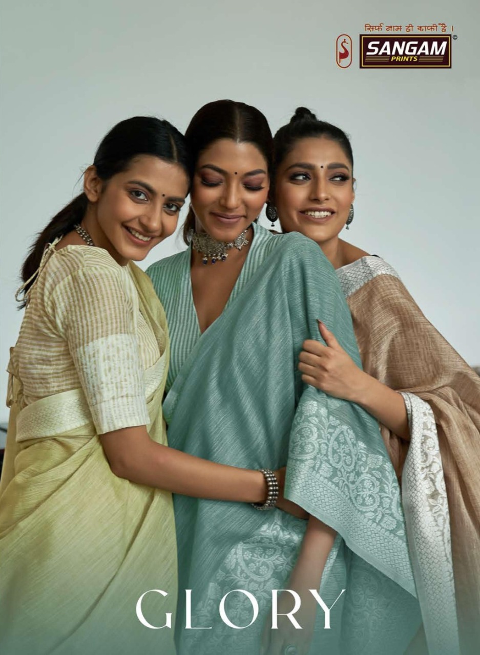 *_New Catalog Launching_* Catalog Name: *_Glory_* Brand: *_Sangam Prints_* Product Type: Saree Fabric: Linen Price Per Piece: 985/- Gst Extra: 5% Work: Weaving Other Specifications: Thread Work Saree Mtr: 5.5 Mtr Blouse: 0.8 Mtr Total Pcs: 6 *_Book your orders now_* |