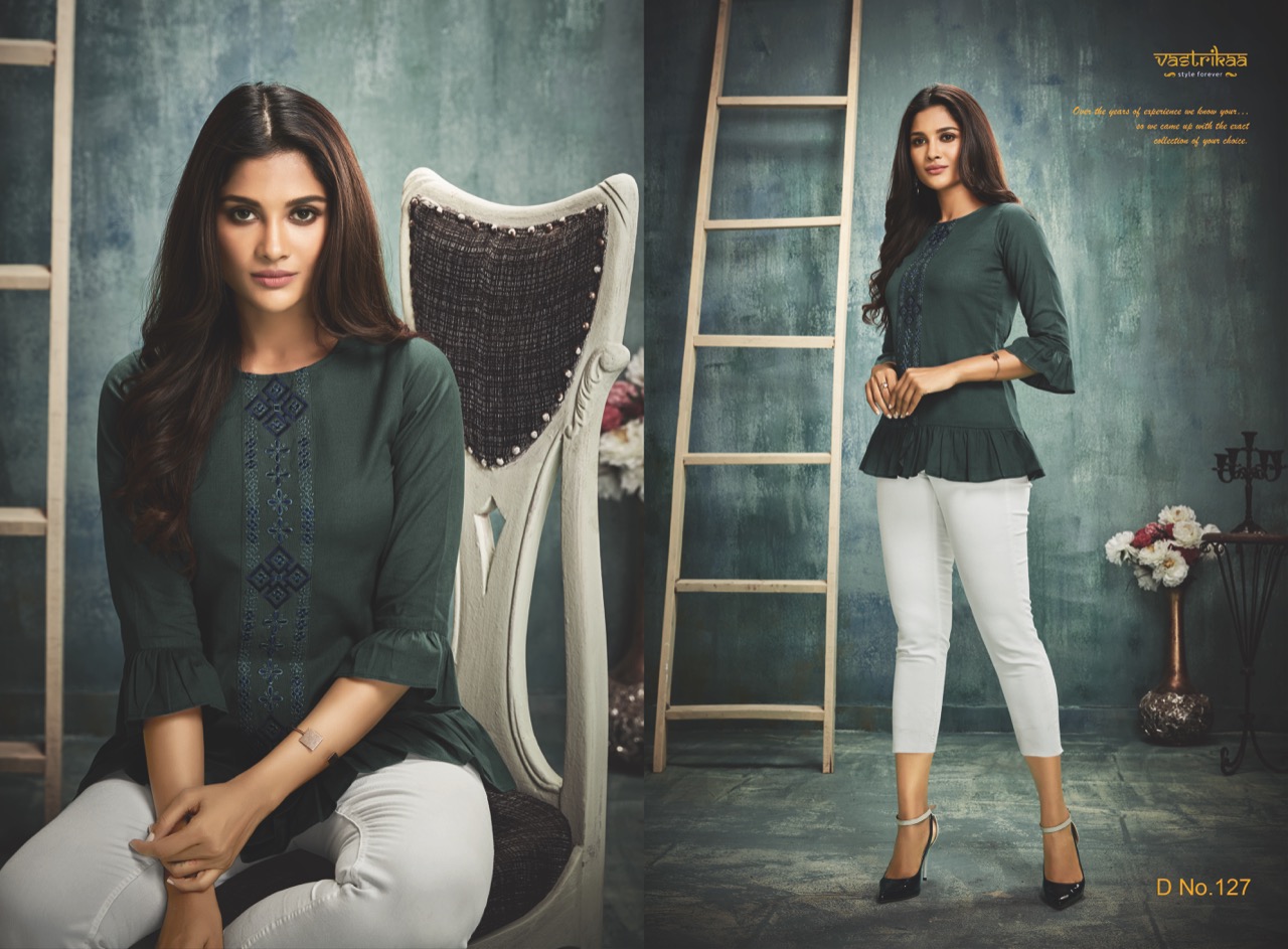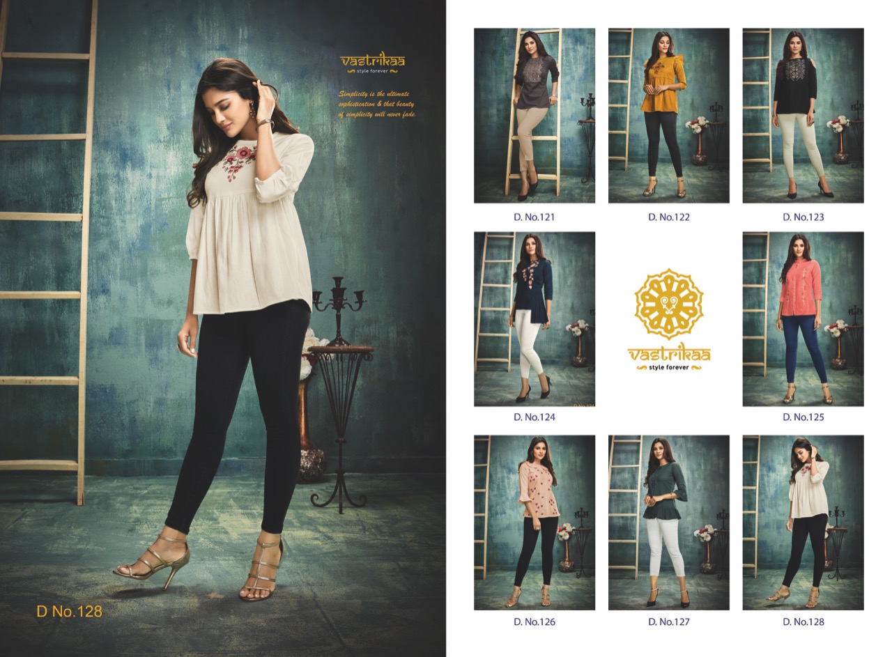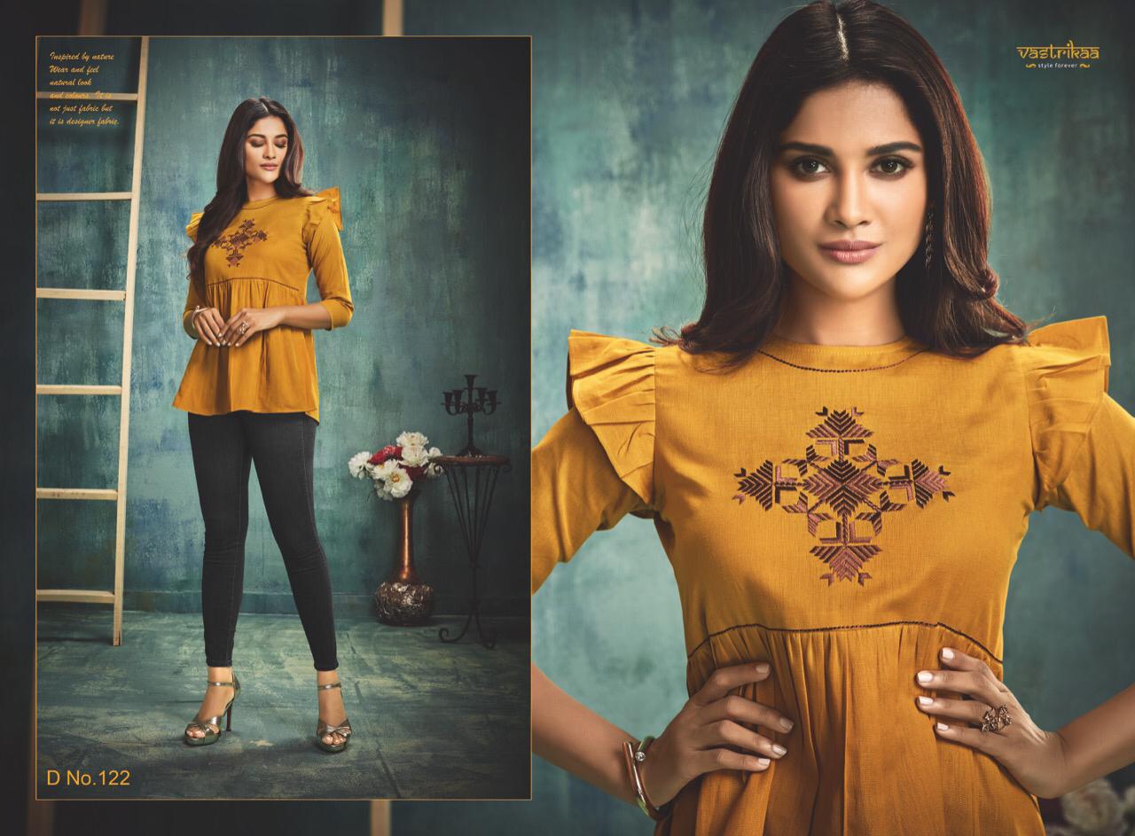 Buy Online Glory By Vastrikaa 121 Series Fancy Cotton Flex Kurti Catlog Wholesaler Surat 8 Pcs of Full Catalogue at Wholesale Price. Looking for Glory By Vastrikaa 121 Series Fancy Cotton Flex Kurti Catlog Wholesaler Surat Full Catalouge at Best Price? Buy Now Glory By Vastrikaa 121 Series Fancy Cotton Flex Kurti Catlog Wholesaler Surat at Wholesale Rate of Rs 3320 with Total 8 Pcs from authroized dealer and supplier of VASTRIKAA Brand. Cost of Each piece is just only Rs 415 which is very low and affordable price to resale the product in your retail store ,This is Surat based Wholesale Supplier & Dealer of VASTRIKAA Brand. Click on Brand name to Know more about VASTRIKAA Brand's products.Call or Whatsapp on 9898838984 for booking or enquiry
