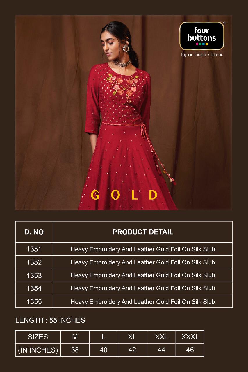 Buy Online Gold By Four Buttons Designer Kurtis Wholesale Supplier And Trader India 5 Pcs of Full Catalogue at Wholesale Price. Looking for Gold By Four Buttons Designer Kurtis Wholesale Supplier And Trader India Full Catalouge at Best Price? Buy Now Gold By Four Buttons Designer Kurtis Wholesale Supplier And Trader India at Wholesale Rate of Rs 6475 with Total 5 Pcs from authroized dealer and supplier of FOUR BUTTONS Brand. Cost of Each piece is just only Rs 1295 which is very low and affordable price to resale the product in your retail store ,This is Surat based Wholesale Supplier & Dealer of FOUR BUTTONS Brand. Click on Brand name to Know more about FOUR BUTTONS Brand's products.Call or Whatsapp on 9898838984 for booking or enquiry