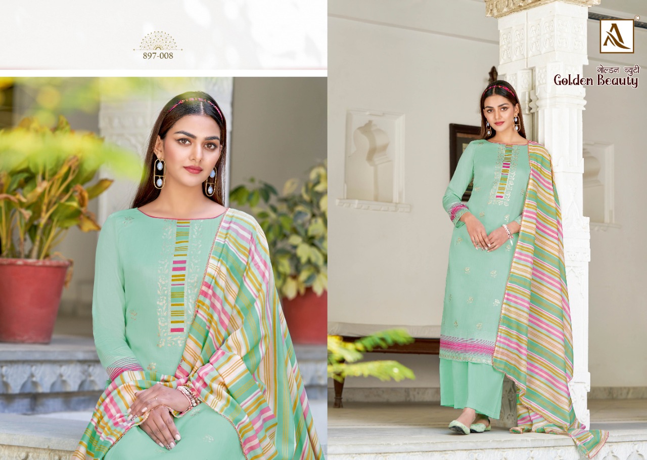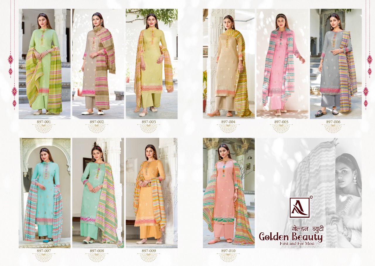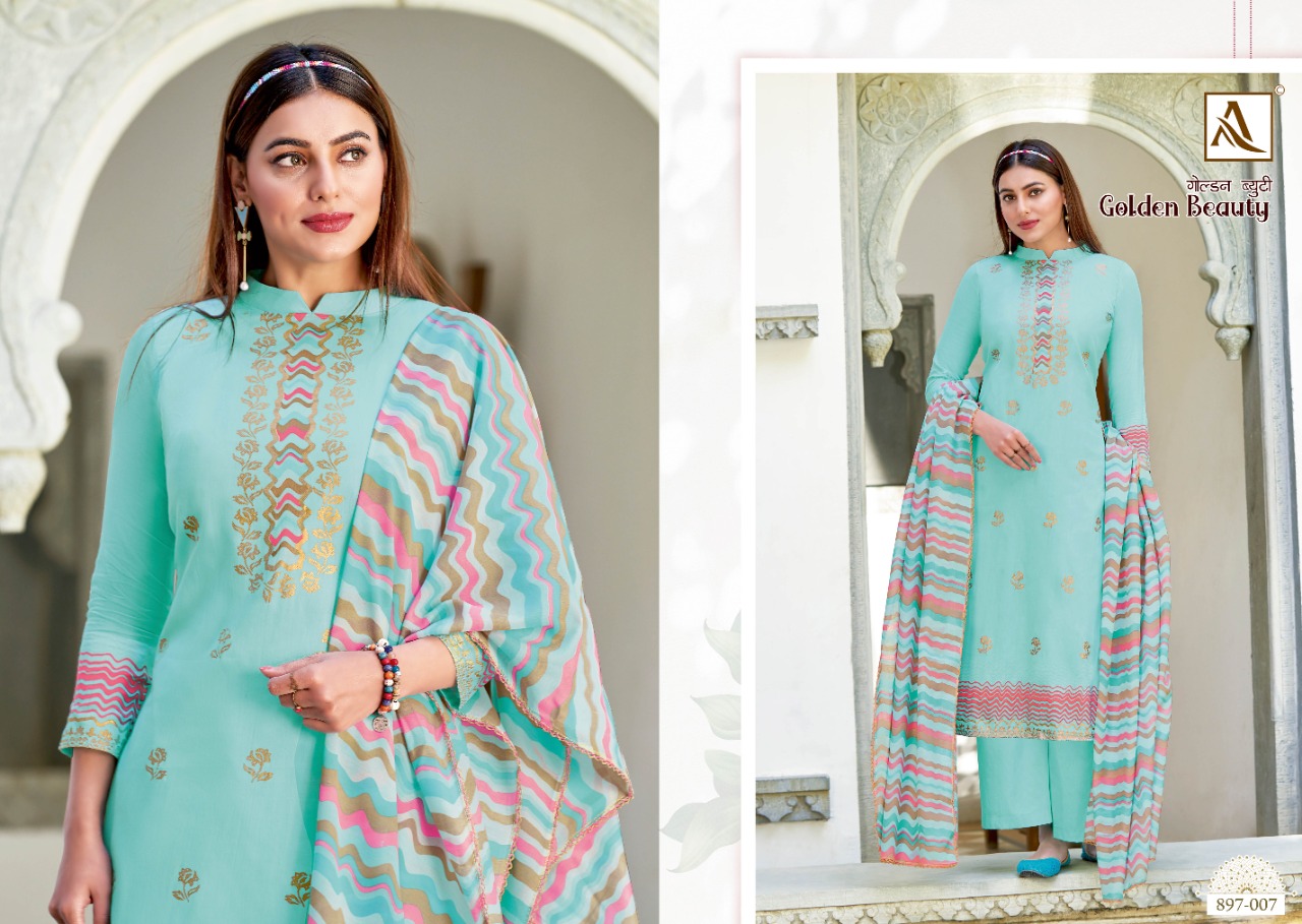 Buy Online Golden Beauty By Alok Suit Wholesale Supplier Traders In Surat 10 Pcs of Full Catalogue at Wholesale Price. Looking for Golden Beauty By Alok Suit Wholesale Supplier Traders In Surat Full Catalouge at Best Price? Buy Now Golden Beauty By Alok Suit Wholesale Supplier Traders In Surat at Wholesale Rate of Rs 6250 with Total 10 Pcs from authroized dealer and supplier of Brand. Cost of Each piece is just only Rs 625 which is very low and affordable price to resale the product in your retail store ,This is Surat based Wholesale Supplier & Dealer of Brand. Click on Brand name to Know more about Brand's products.Call or Whatsapp on 9898838984 for booking or enquiry