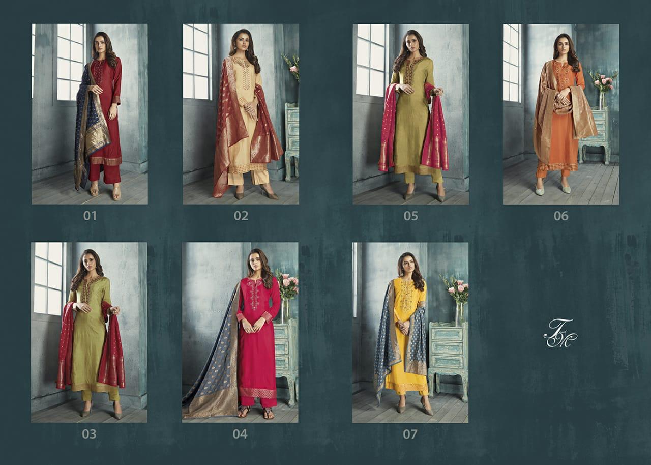 Golden Bell By T N M Sahiba Fancy Rassian Silk Salwar Kameez With Silk Dupatta Collection Wholesale Dealer Surat