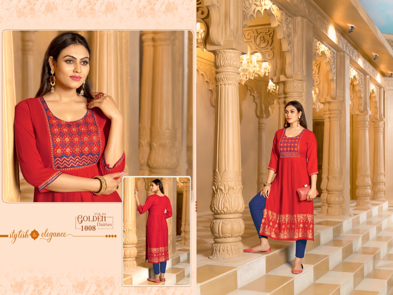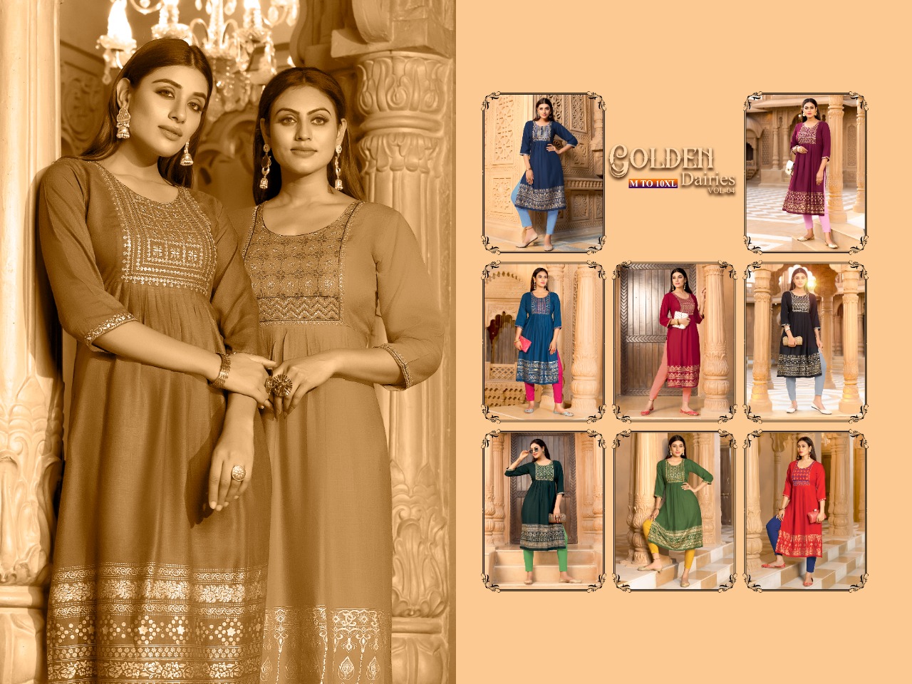 Buy Online Golden Dairies Vol 4 Designer Kurti Wholesaler Supplier From Surat 8 Pcs of Full Catalogue at Wholesale Price. Looking for Golden Dairies Vol 4 Designer Kurti Wholesaler Supplier From Surat Full Catalouge at Best Price? Buy Now Golden Dairies Vol 4 Designer Kurti Wholesaler Supplier From Surat at Wholesale Rate of Rs 3720 with Total 8 Pcs from authroized dealer and supplier of BRAND'S Brand. Cost of Each piece is just only Rs 465 which is very low and affordable price to resale the product in your retail store ,This is Surat based Wholesale Supplier & Dealer of BRAND'S Brand. Click on Brand name to Know more about BRAND'S Brand's products.Call or Whatsapp on 9898838984 for booking or enquiry