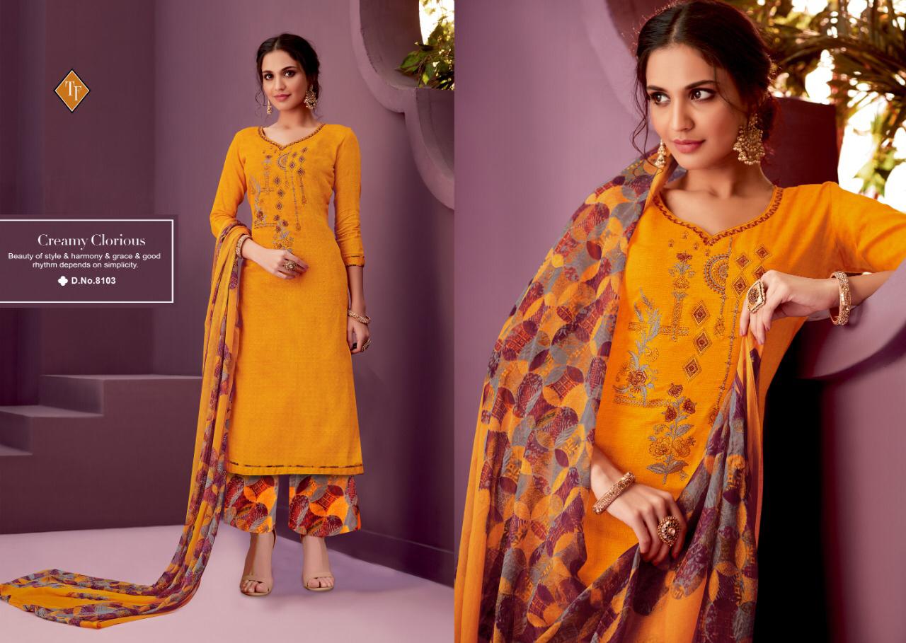 Buy Online Golden Patiyala By Tanishk Fashion 8101 Series Fancy Jam Satin Cotton Patiala Suit Collection Wholesaler Surat 8 Pcs of Full Catalogue at Wholesale Price. Looking for Golden Patiyala By Tanishk Fashion 8101 Series Fancy Jam Satin Cotton Patiala Suit Collection Wholesaler Surat Full Catalouge at Best Price? Buy Now Golden Patiyala By Tanishk Fashion 8101 Series Fancy Jam Satin Cotton Patiala Suit Collection Wholesaler Surat at Wholesale Rate of Rs 5200 with Total 8 Pcs from authroized dealer and supplier of Tanishk fashion Brand. Cost of Each piece is just only Rs 650 which is very low and affordable price to resale the product in your retail store ,This is Surat based Wholesale Supplier & Dealer of Tanishk fashion Brand. Click on Brand name to Know more about Tanishk fashion Brand's products.Call or Whatsapp on 9898838984 for booking or enquiry