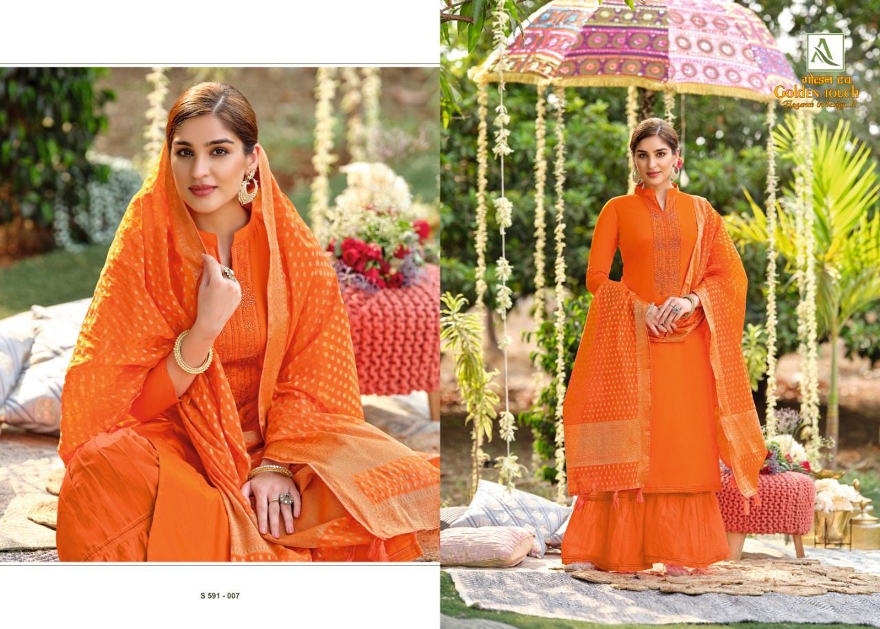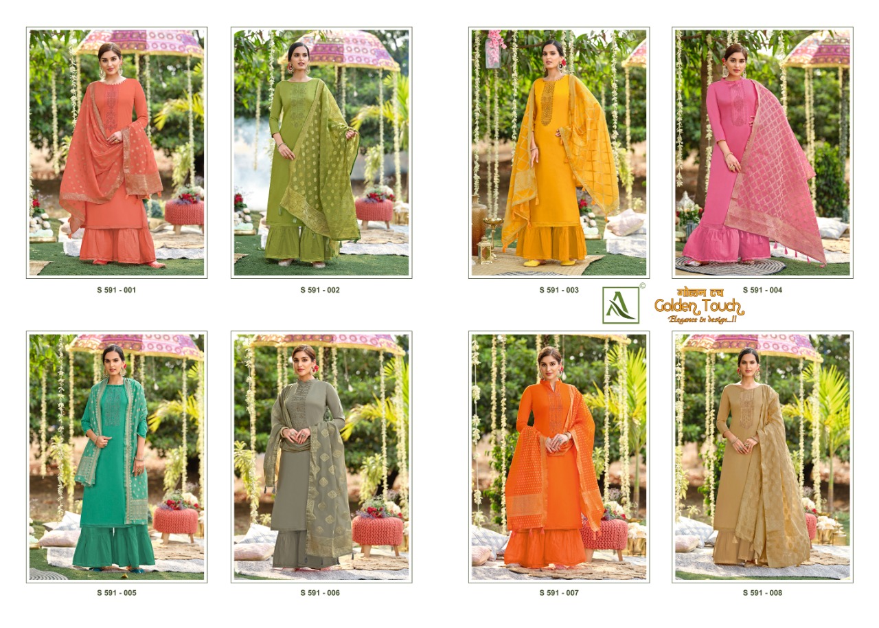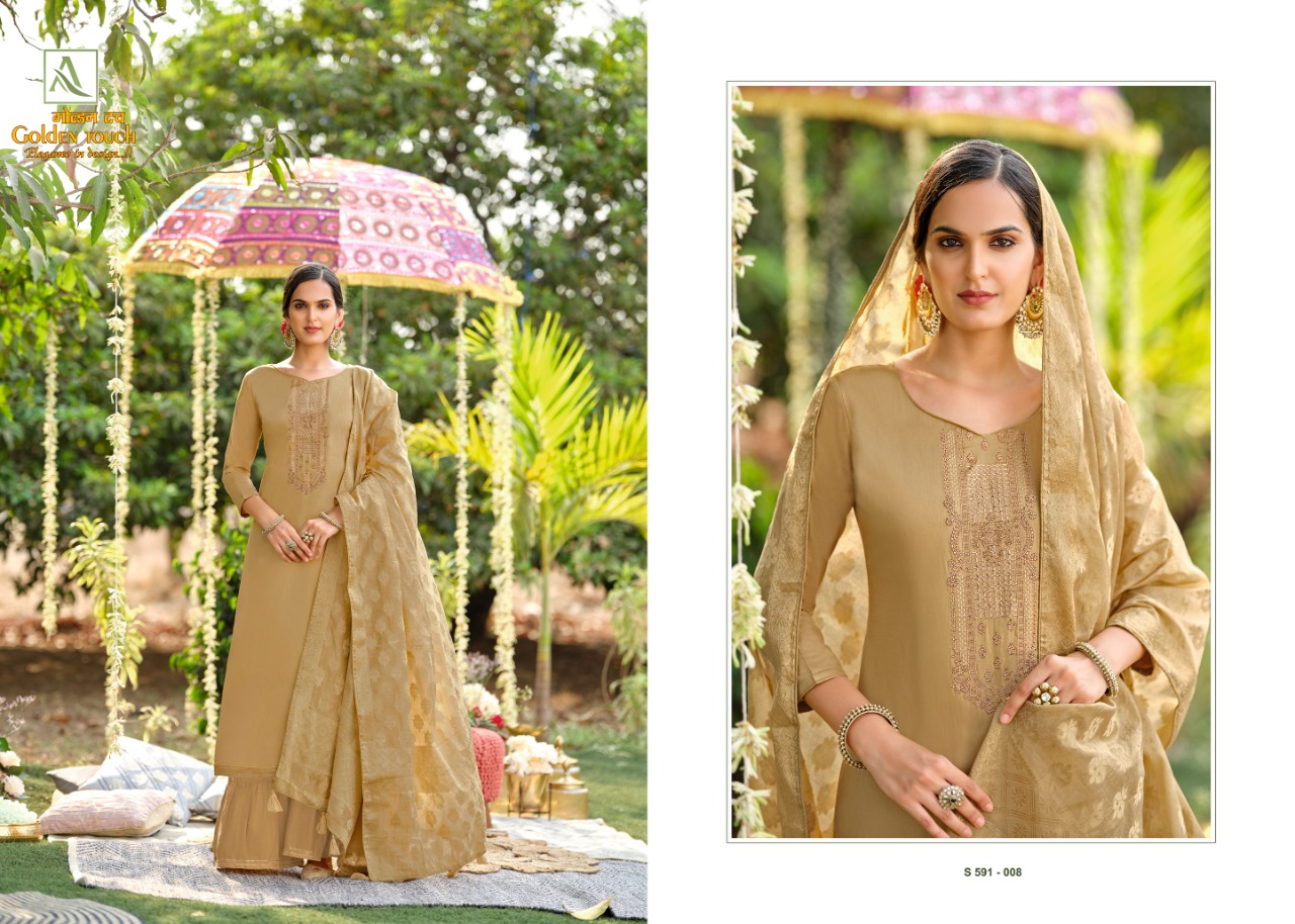 Buy Online Golden Touch By Alok Suit Wholesale Suppliers And Dealer From India 8 Pcs of Full Catalogue at Wholesale Price. Looking for Golden Touch By Alok Suit Wholesale Suppliers And Dealer From India Full Catalouge at Best Price? Buy Now Golden Touch By Alok Suit Wholesale Suppliers And Dealer From India at Wholesale Rate of Rs 6808 with Total 8 Pcs from authroized dealer and supplier of Brand. Cost of Each piece is just only Rs 851 which is very low and affordable price to resale the product in your retail store ,This is Surat based Wholesale Supplier & Dealer of Brand. Click on Brand name to Know more about Brand's products.Call or Whatsapp on 9898838984 for booking or enquiry