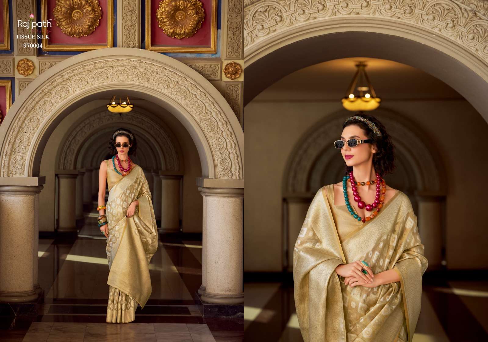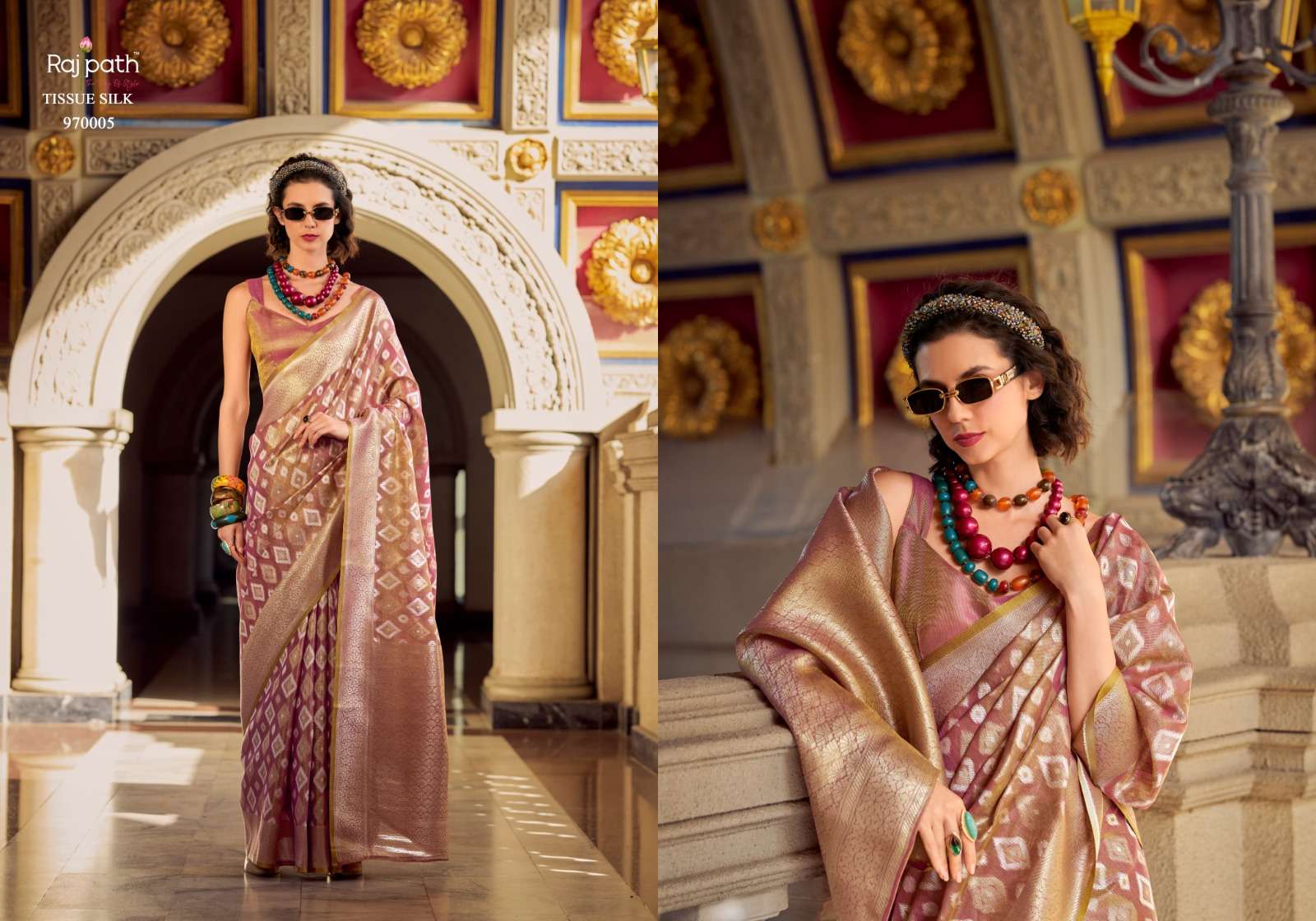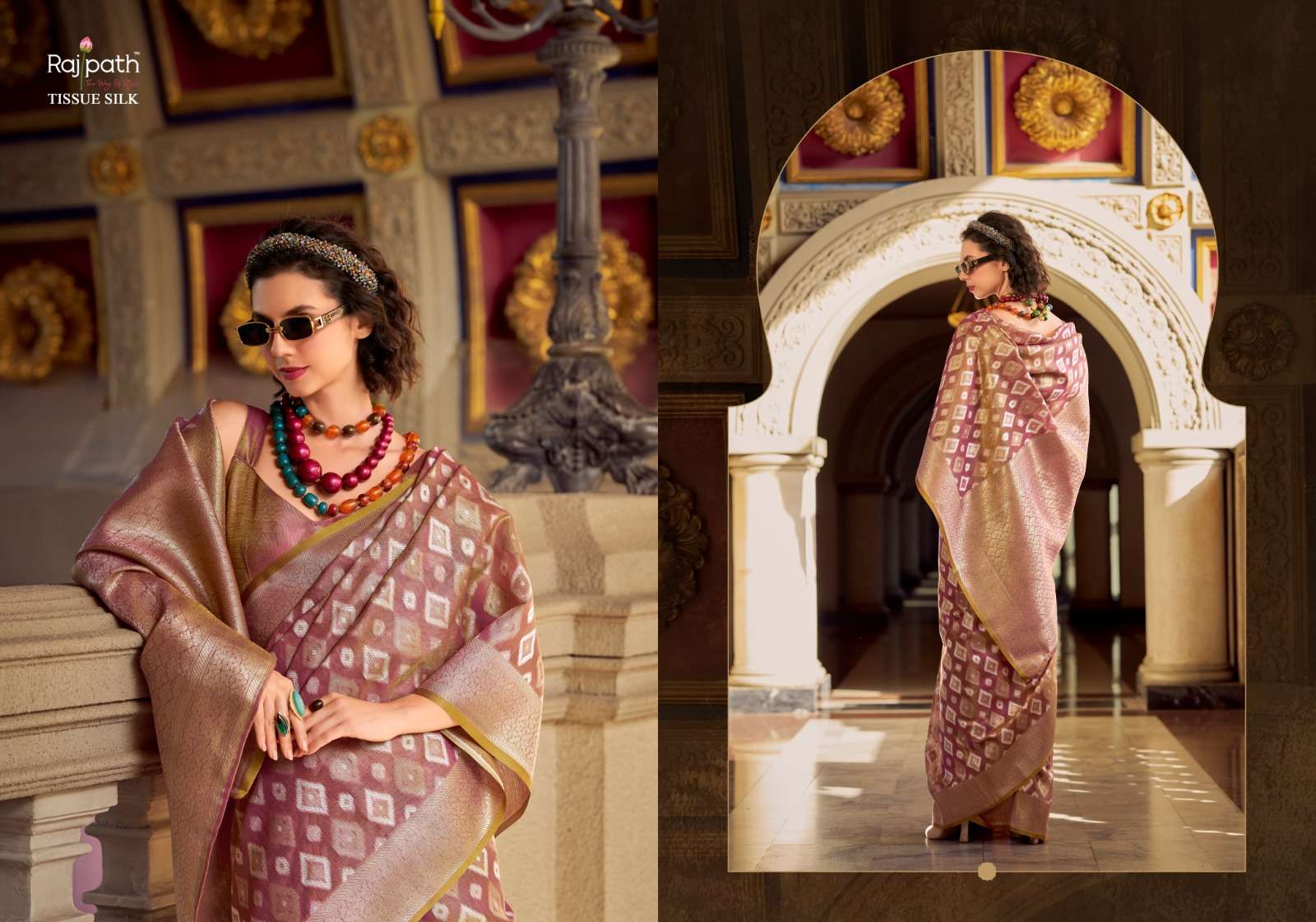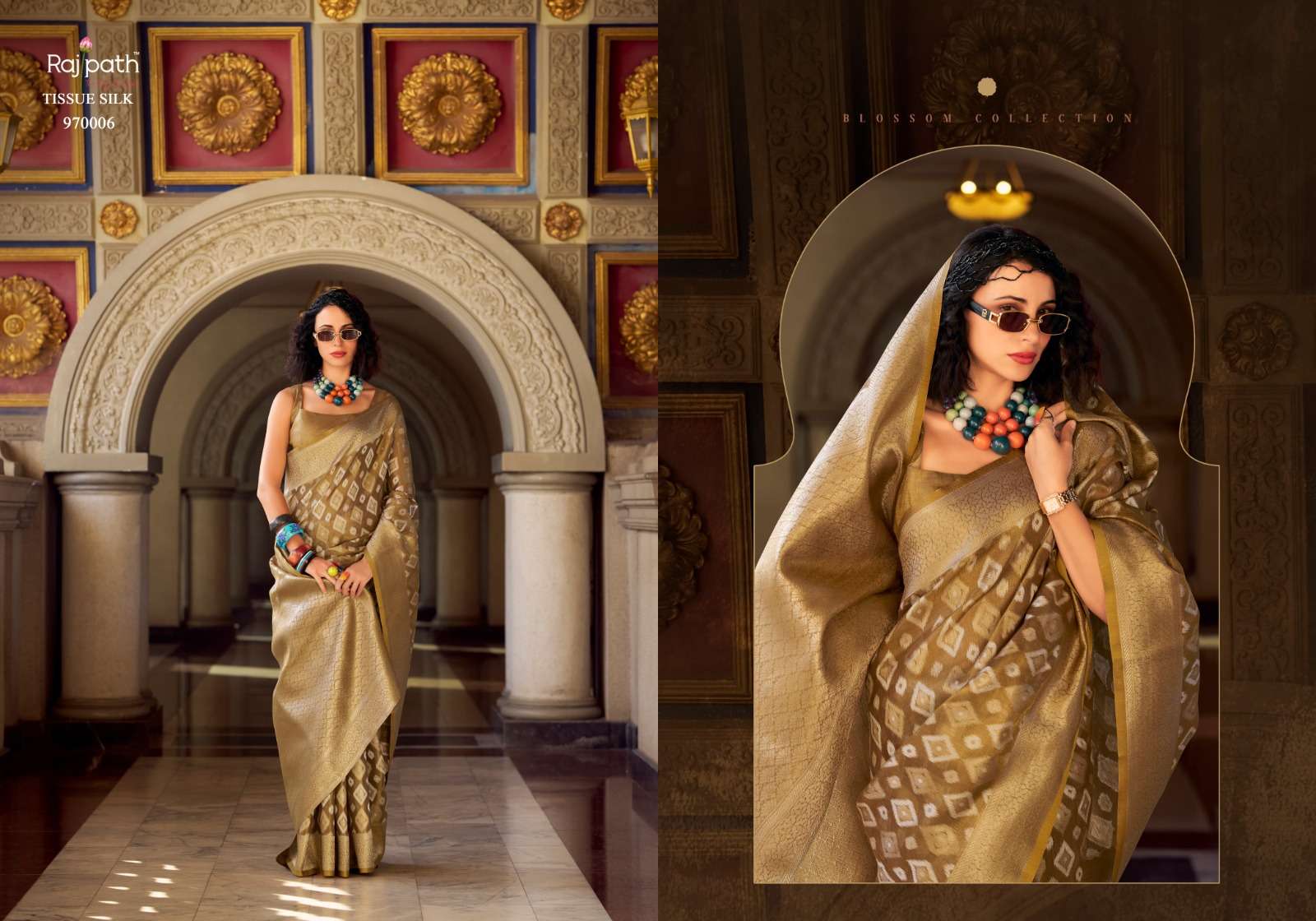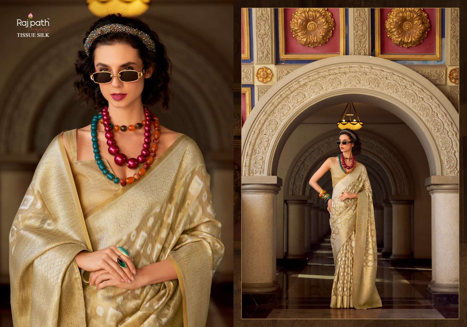 Goldmine by RajPath Fabrics Tissue Silk saree collection manufacturer surat