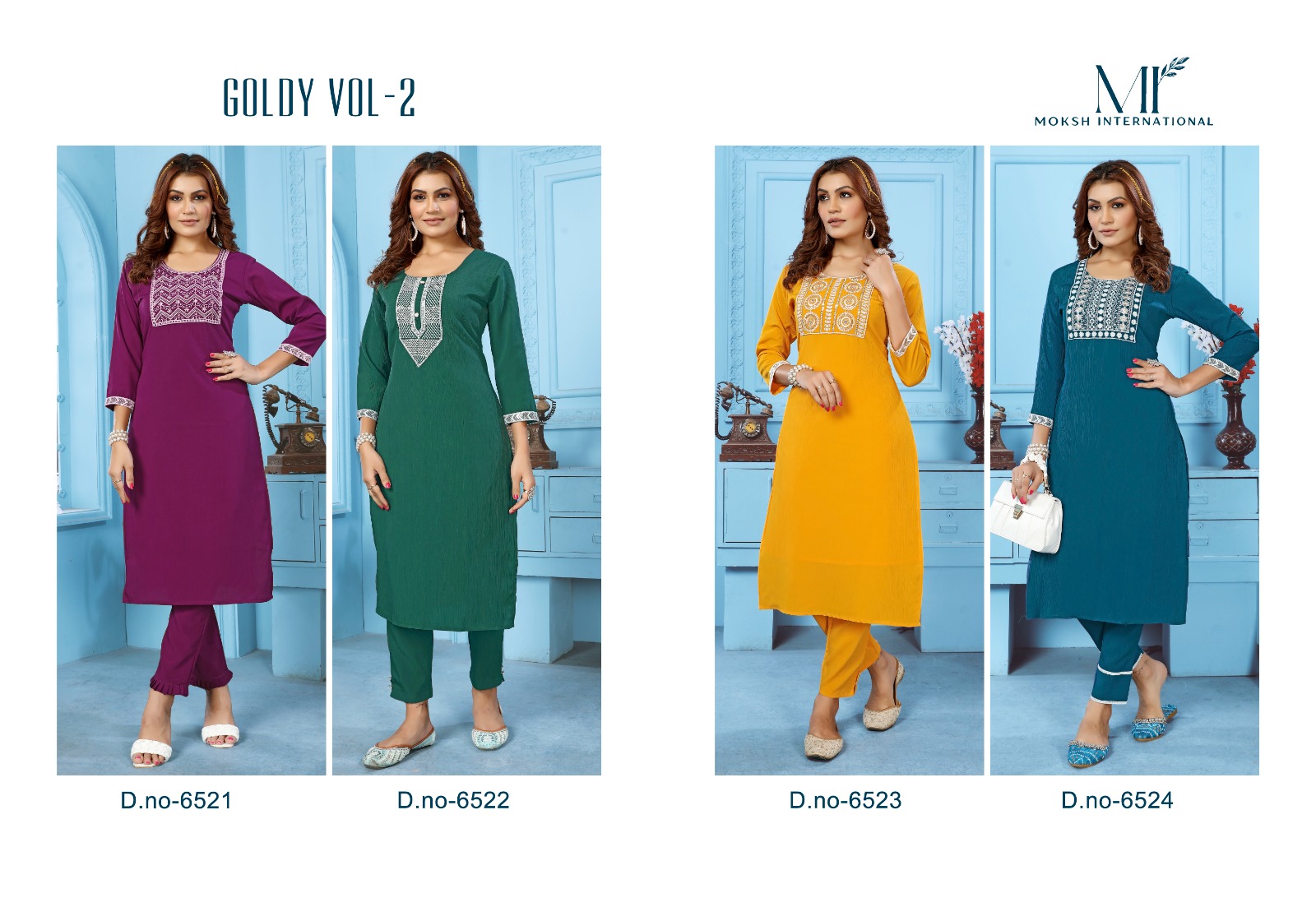 Goldy Vol 2 By Moksh International Cotton Kurti With Pant