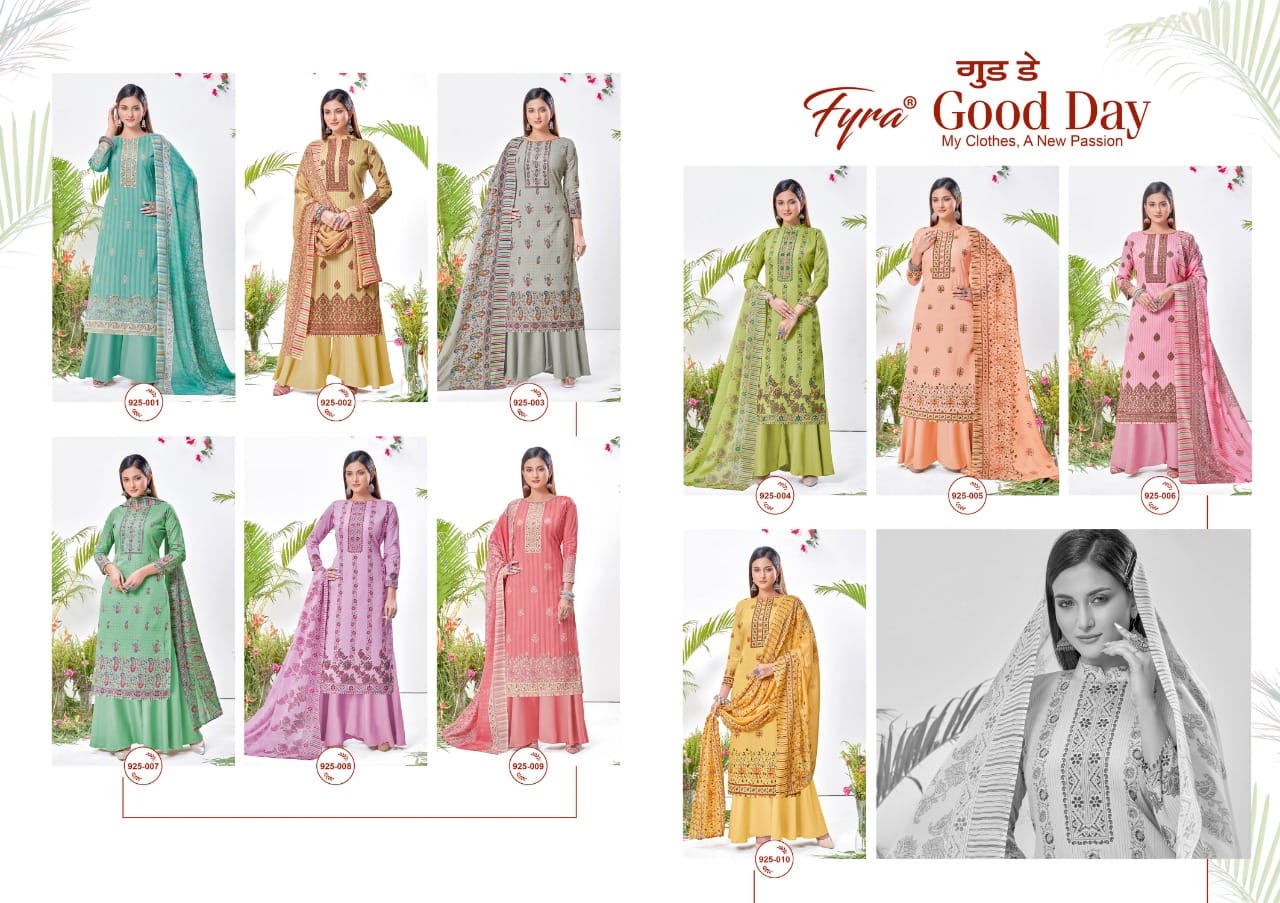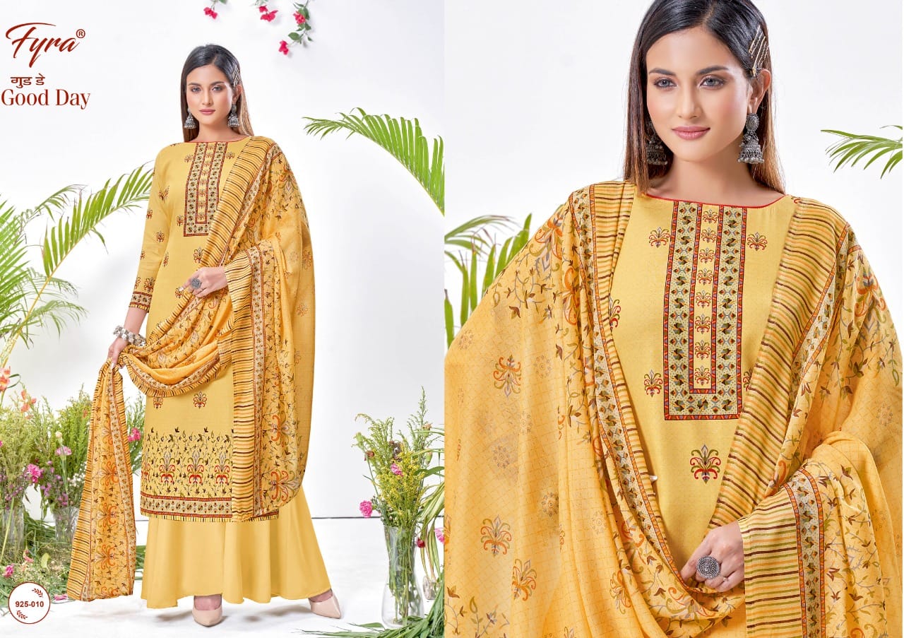 Buy Online Good Day By Fyra Designer Hub By Alok Suit Wholesale Supplier Traders In Surat 10 Pcs of Full Catalogue at Wholesale Price. Looking for Good Day By Fyra Designer Hub By Alok Suit Wholesale Supplier Traders In Surat Full Catalouge at Best Price? Buy Now Good Day By Fyra Designer Hub By Alok Suit Wholesale Supplier Traders In Surat at Wholesale Rate of Rs 2510 with Total 10 Pcs from authroized dealer and supplier of Brand. Cost of Each piece is just only Rs 251 which is very low and affordable price to resale the product in your retail store ,This is Surat based Wholesale Supplier & Dealer of Brand. Click on Brand name to Know more about Brand's products.Call or Whatsapp on 9898838984 for booking or enquiry