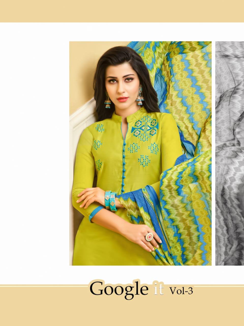 _R R FASHION_ *GOOGLE IT VOL. 3* TOP:-MODAL SILK WITH EMBROIDERY BOTTOM :- COTTON DUPATTA :- CHIFFON PRINT RATE :- 399/- Set to set. GST 5 Percent Extra. Delivery 2 days . Dispatch :- 14-12-18 |