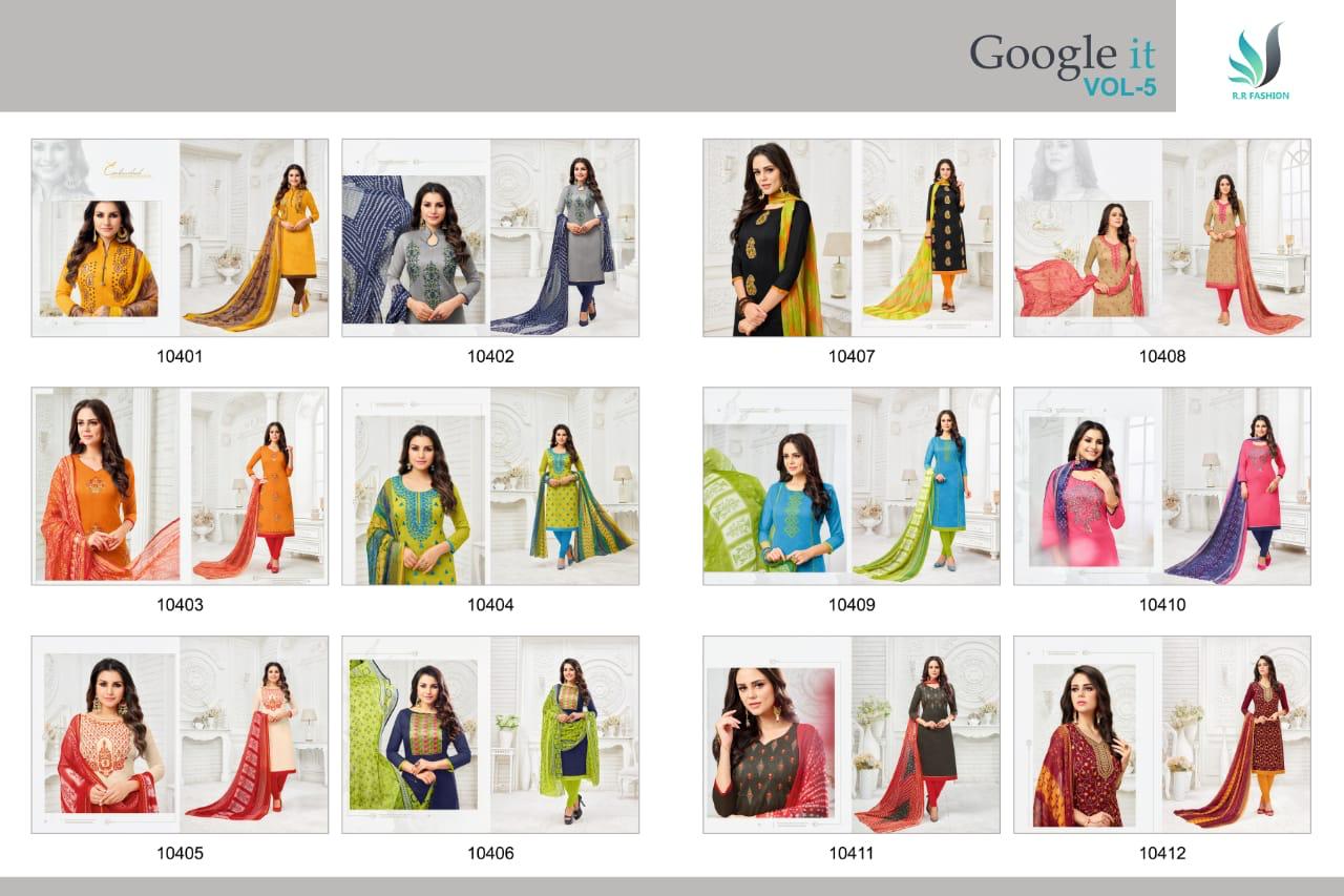 Buy Online Google It Vol 5 By R R Fashion Silk Embroidered Suits Wholesale Supplier Gujarat 12 Pcs of Full Catalogue at Wholesale Price. Looking for Google It Vol 5 By R R Fashion Silk Embroidered Suits Wholesale Supplier Gujarat Full Catalouge at Best Price? Buy Now Google It Vol 5 By R R Fashion Silk Embroidered Suits Wholesale Supplier Gujarat at Wholesale Rate of Rs 4788 with Total 12 Pcs from authroized dealer and supplier of RR fashion Brand. Cost of Each piece is just only Rs 399 which is very low and affordable price to resale the product in your retail store ,This is Surat based Wholesale Supplier & Dealer of RR fashion Brand. Click on Brand name to Know more about RR fashion Brand's products.Call or Whatsapp on 9898838984 for booking or enquiry