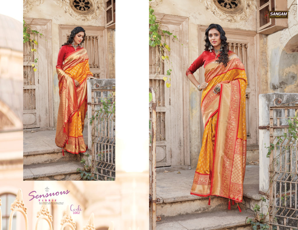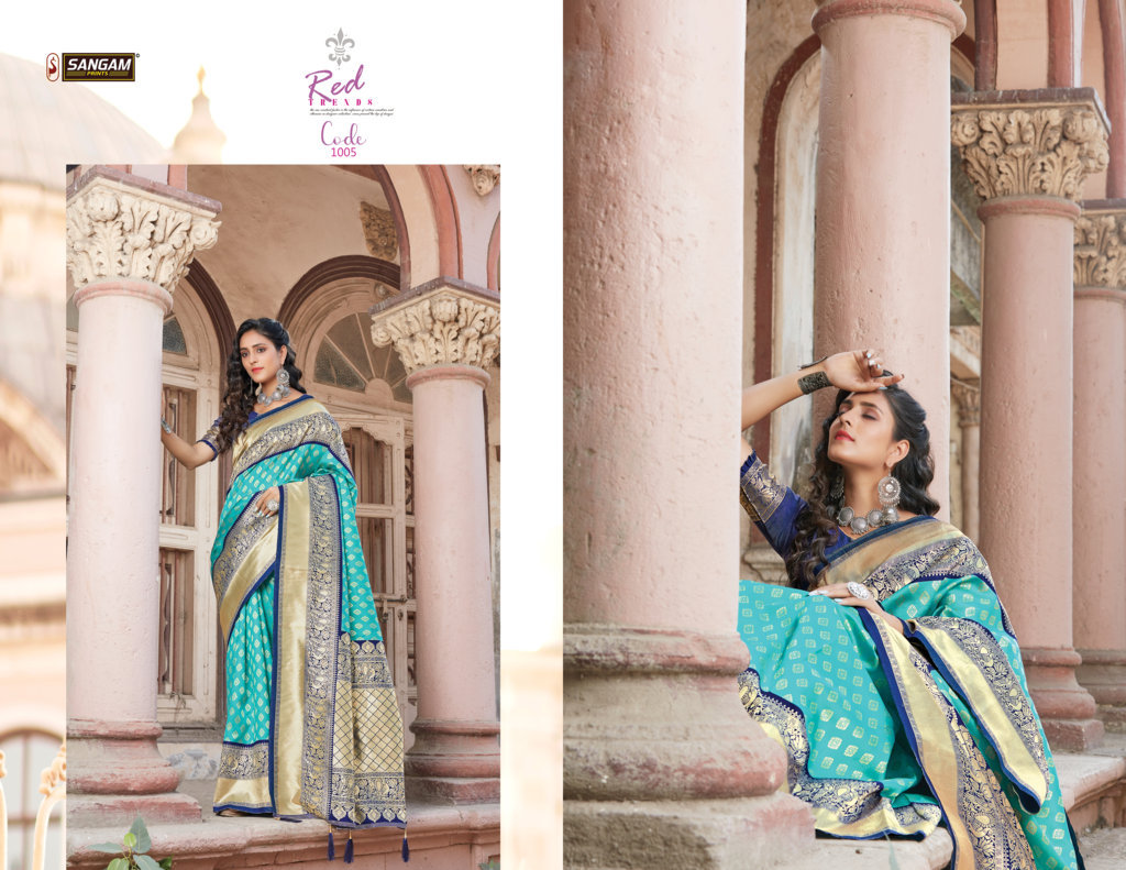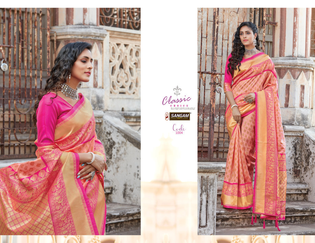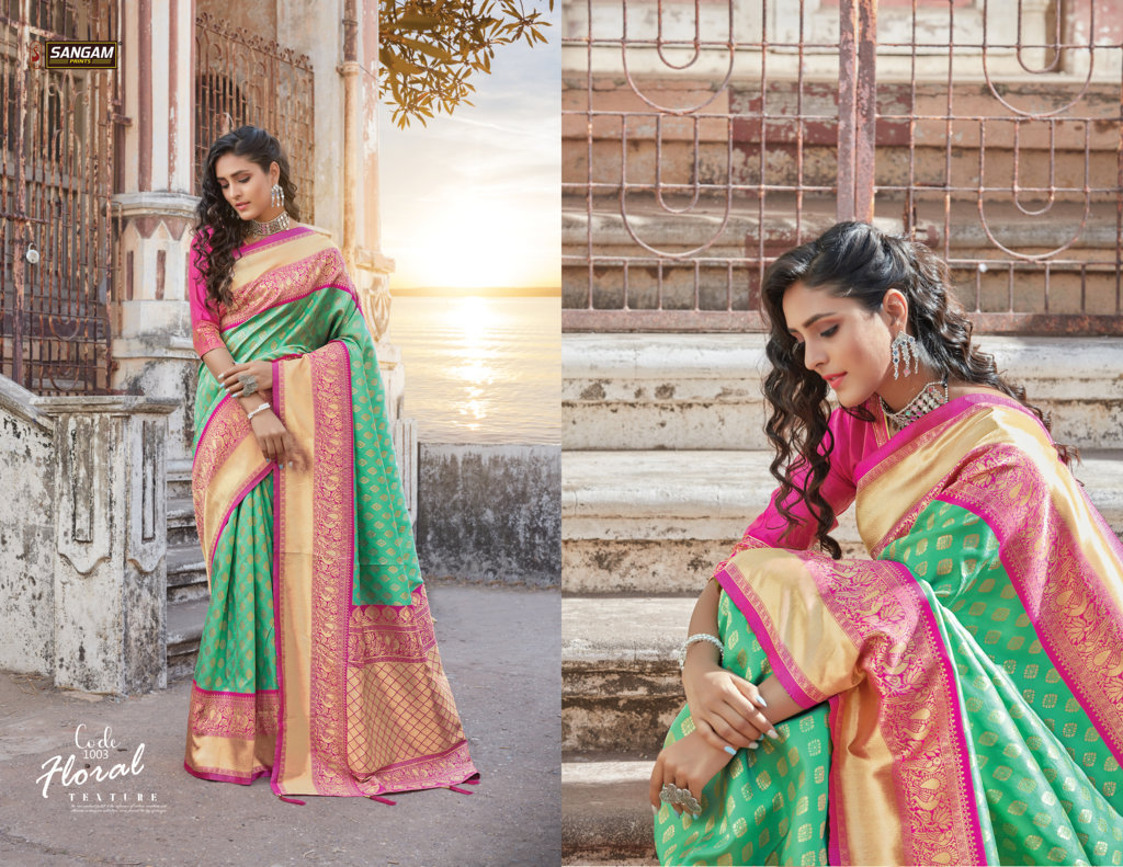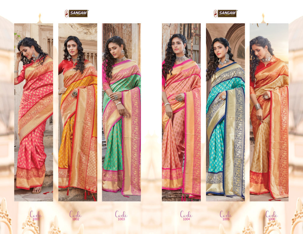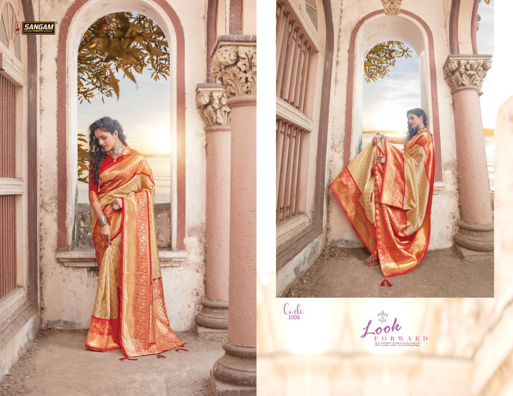 Catalog Name : GOORI By sangam Saree Size : 5.50 Mtr Blouse Fabric : 0.80 Mtr Saree Fabric : Silk Blouse Fabric : Silk Price : 940/-Gst Extra Set to set Delivery from today |