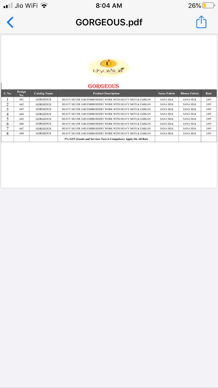 Brand - Naree. Catlog name - GORGEOUS. Series - 641 to 648. Set & loose & singel . Single extra 100 Delivery from today |