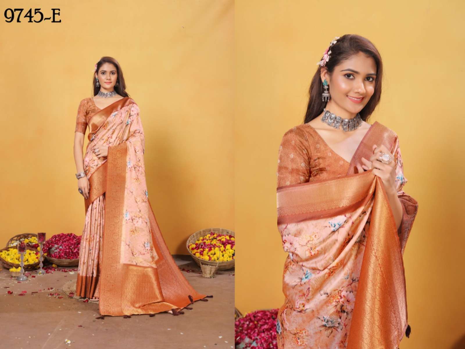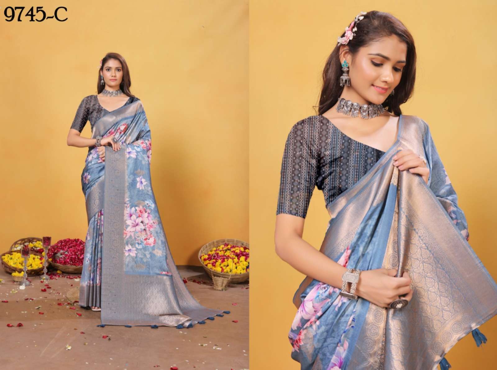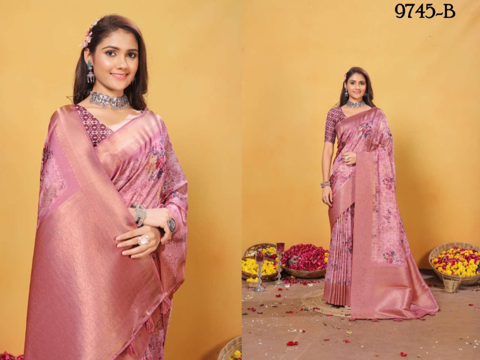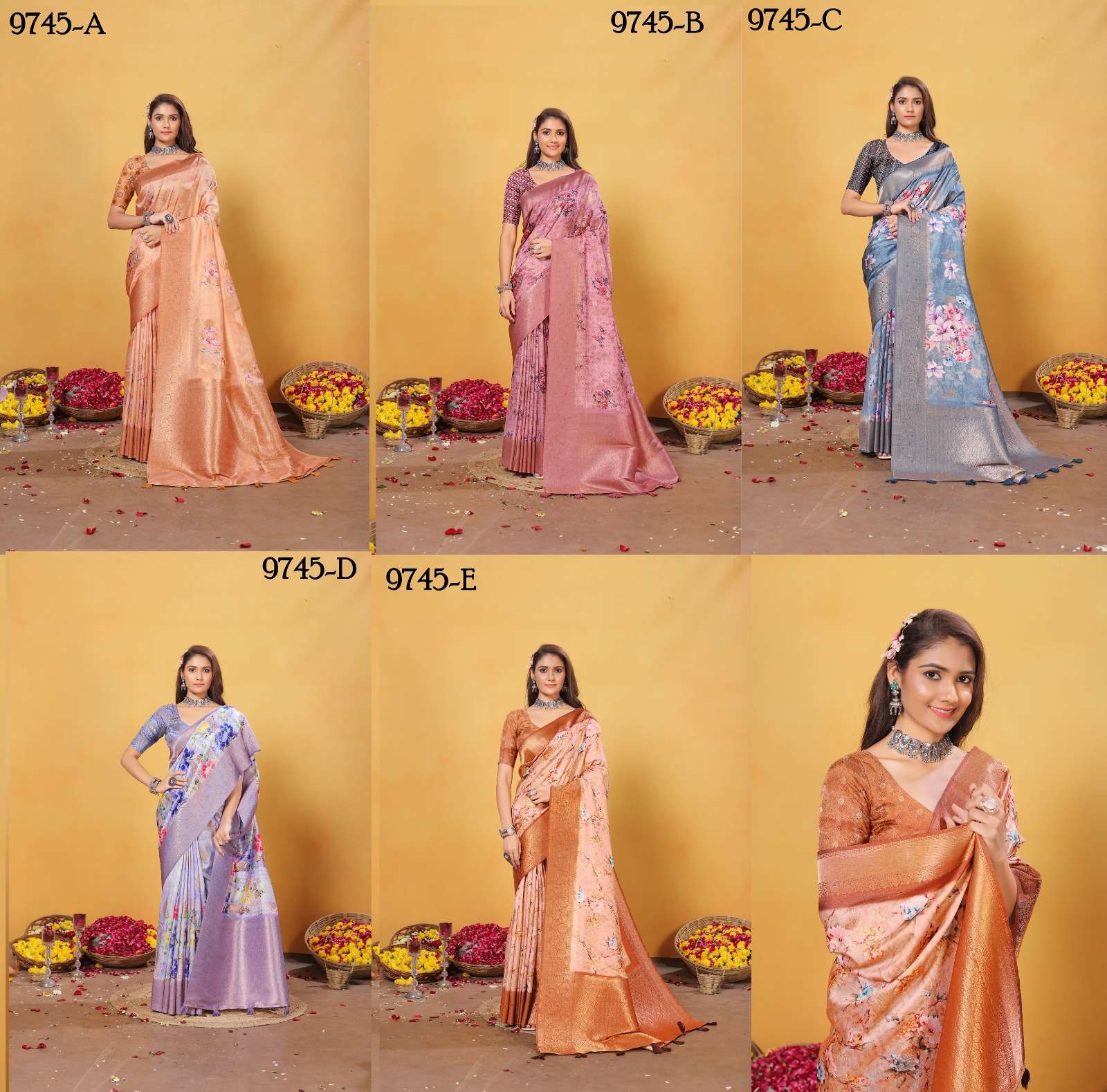 Gouri Series 9745A To 9745E by Sanjana Lifestyle fancy saree collection manufacturer surat Series 9745A To 9745E by Sanjana Lifestyle fancy saree collection manufacturer surat