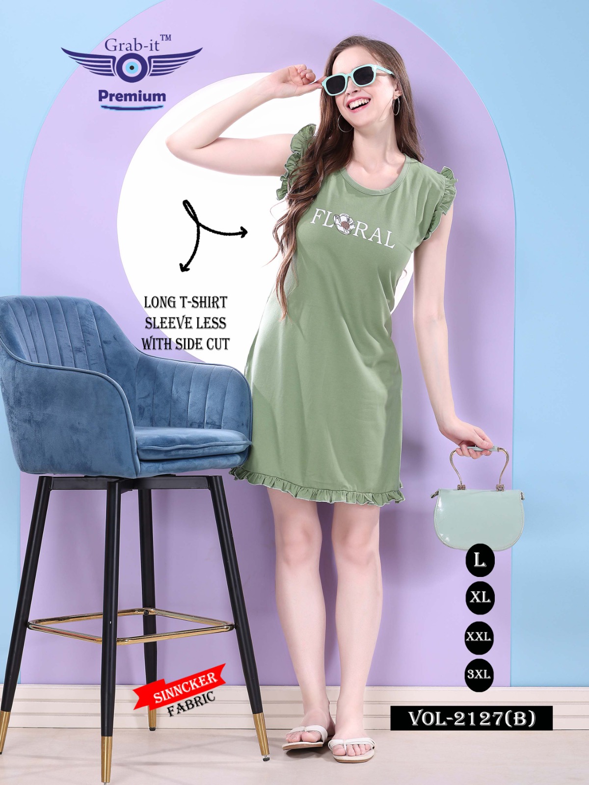 Buy Online Grab It Long T Shirt With Side Cut Sleev Less Frill 6 Pcs of Full Catalogue at Wholesale Price. Looking for Grab It Long T Shirt With Side Cut Sleev Less Frill Full Catalouge at Best Price? Buy Now Grab It Long T Shirt With Side Cut Sleev Less Frill at Wholesale Rate of Rs 0 with Total 6 Pcs from authroized dealer and supplier of Brand. Cost of Each piece is just only Rs 0 which is very low and affordable price to resale the product in your retail store ,This is Surat based Wholesale Supplier & Dealer of Brand. Click on Brand name to Know more about Brand's products.Call or Whatsapp on 9898838984 for booking or enquiry