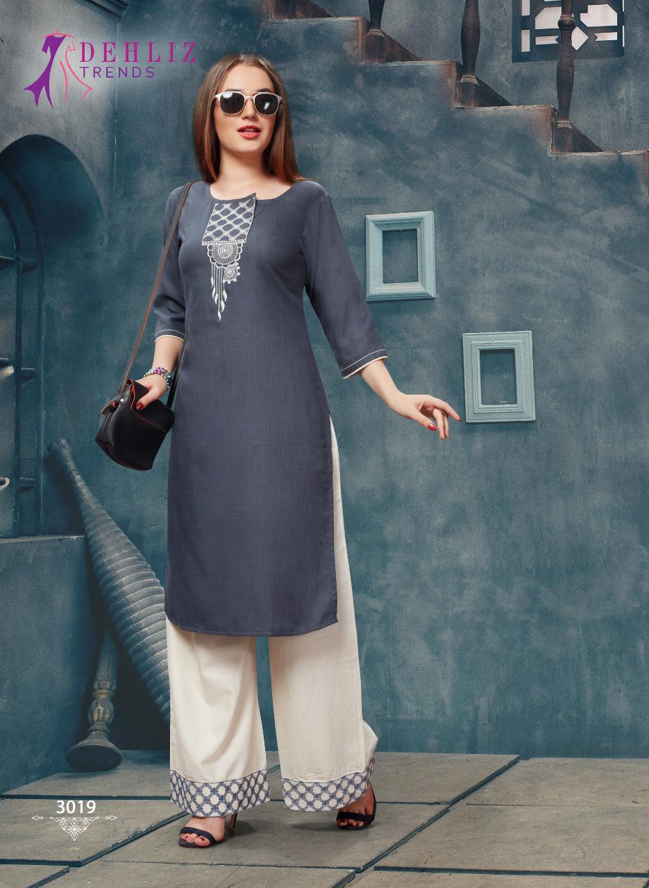 Buy Online Grace By Dehliz Trendz Slab Kurtis With Plazzo Wholesale Supplier Gujarat 6 Pcs of Full Catalogue at Wholesale Price. Looking for Grace By Dehliz Trendz Slab Kurtis With Plazzo Wholesale Supplier Gujarat Full Catalouge at Best Price? Buy Now Grace By Dehliz Trendz Slab Kurtis With Plazzo Wholesale Supplier Gujarat at Wholesale Rate of Rs 3870 with Total 6 Pcs from authroized dealer and supplier of Brand. Cost of Each piece is just only Rs 645 which is very low and affordable price to resale the product in your retail store ,This is Surat based Wholesale Supplier & Dealer of Brand. Click on Brand name to Know more about Brand's products.Call or Whatsapp on 9898838984 for booking or enquiry