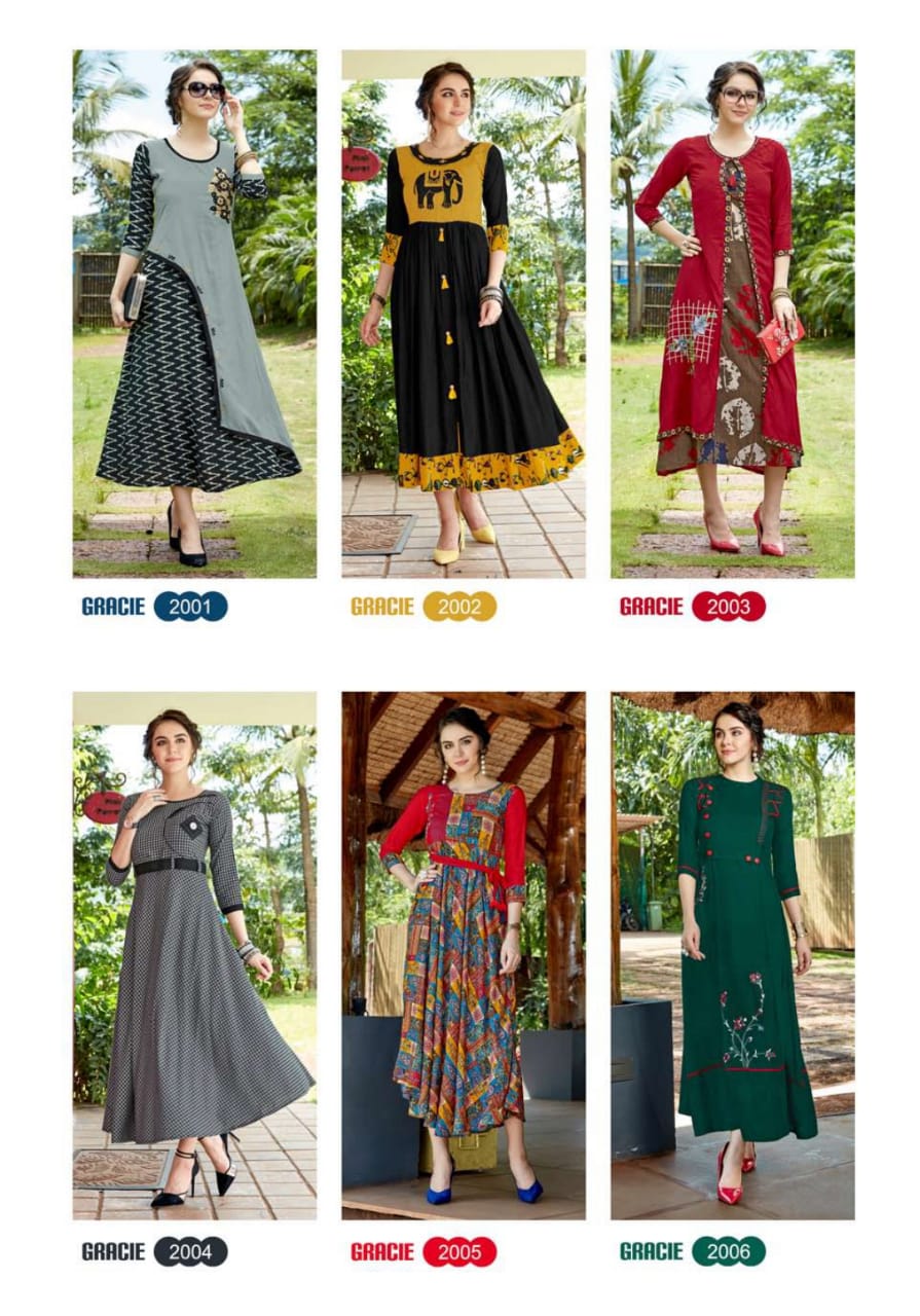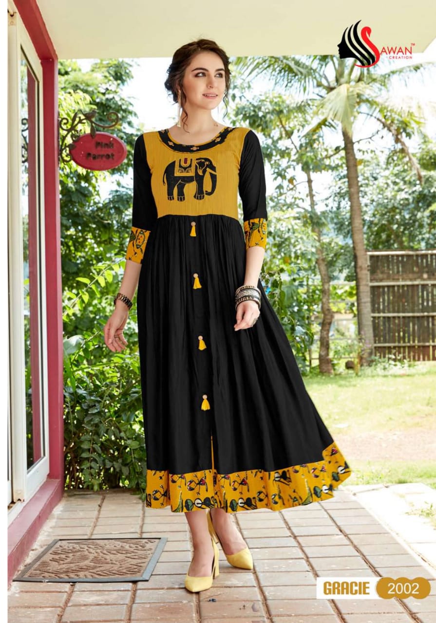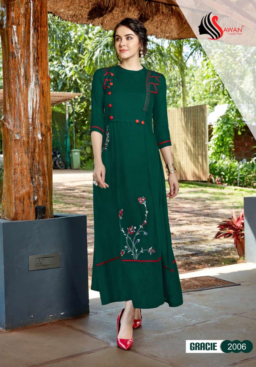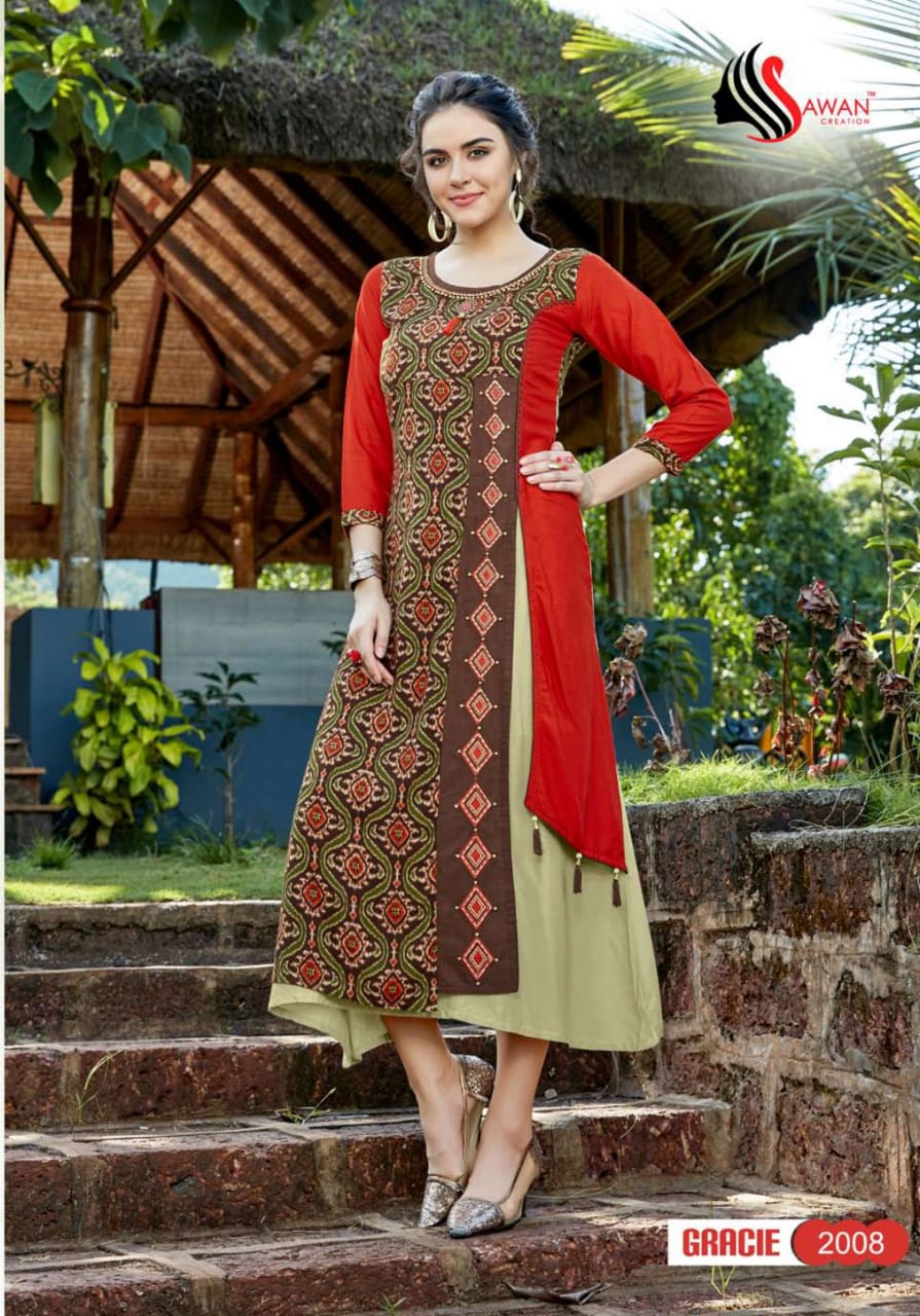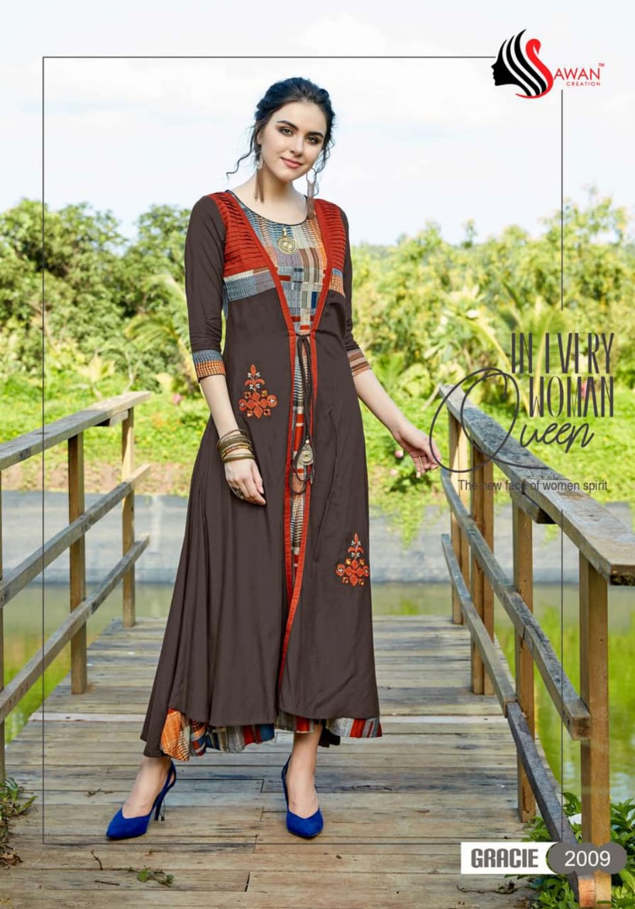 Buy Online Gracie Vol 2 By Sawan Creation 2001 Series Reyon Printed Kurti Catlog Wholesale Dealer And Supplier Surat 10 Pcs of Full Catalogue at Wholesale Price. Looking for Gracie Vol 2 By Sawan Creation 2001 Series Reyon Printed Kurti Catlog Wholesale Dealer And Supplier Surat Full Catalouge at Best Price? Buy Now Gracie Vol 2 By Sawan Creation 2001 Series Reyon Printed Kurti Catlog Wholesale Dealer And Supplier Surat at Wholesale Rate of Rs 5990 with Total 10 Pcs from authroized dealer and supplier of SAWAN CREATION Brand. Cost of Each piece is just only Rs 599 which is very low and affordable price to resale the product in your retail store ,This is Surat based Wholesale Supplier & Dealer of SAWAN CREATION Brand. Click on Brand name to Know more about SAWAN CREATION Brand's products.Call or Whatsapp on 9898838984 for booking or enquiry