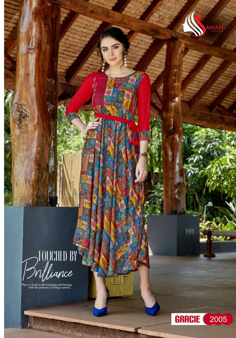 Gracie Vol 2 By Sawan Creation 2001 Series Reyon Printed Kurti Catlog Wholesale Dealer And Supplier Surat