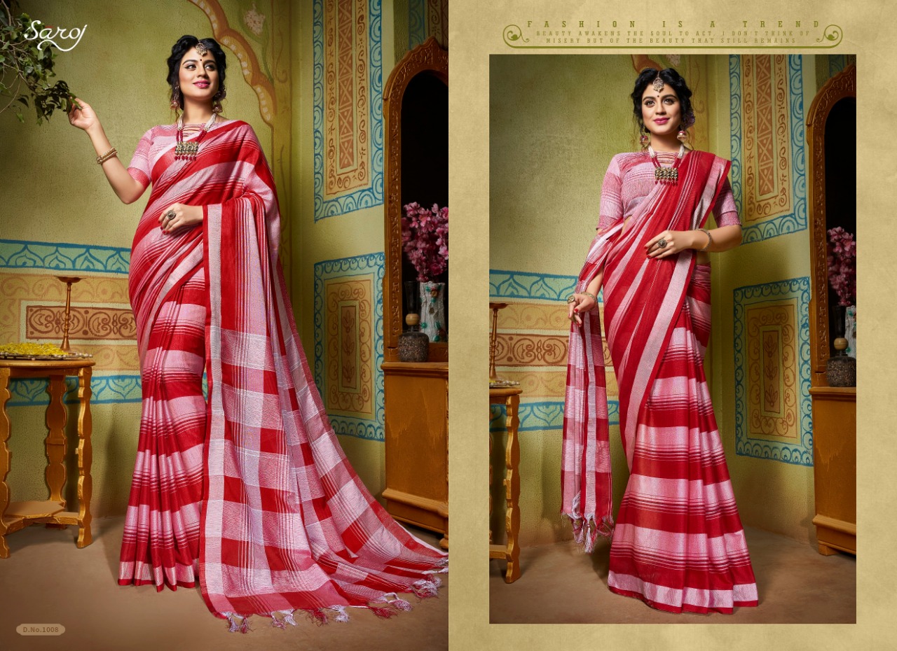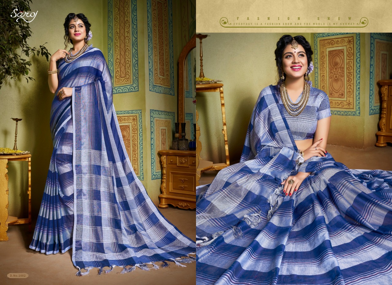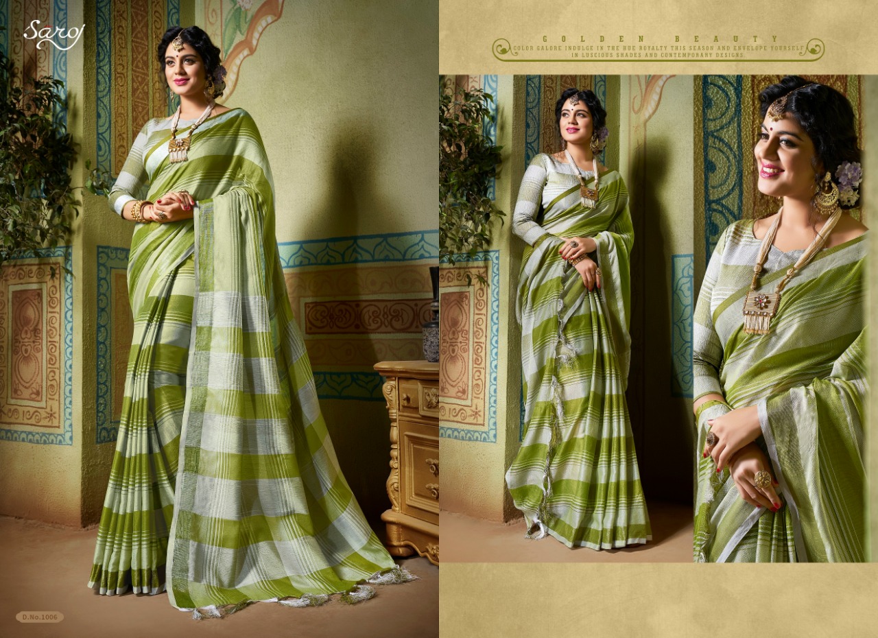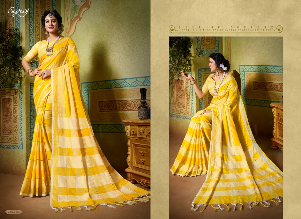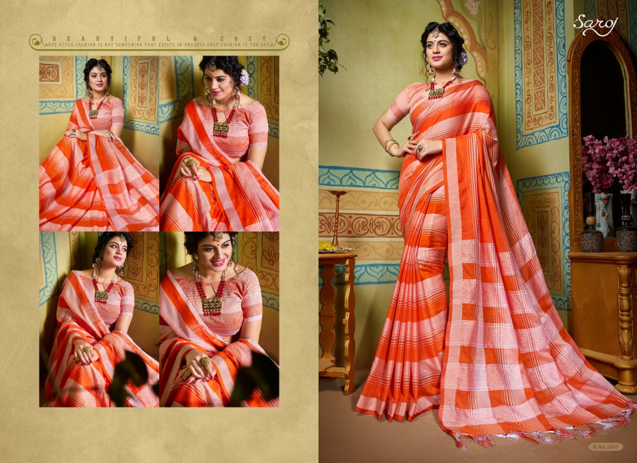 Buy Online Grapes By Saroj 1001 Series Fancy Linen Cotton Handloom Printed Saree Catlog Wholesale Dealer And Supplier Surat 8 Pcs of Full Catalogue at Wholesale Price. Looking for Grapes By Saroj 1001 Series Fancy Linen Cotton Handloom Printed Saree Catlog Wholesale Dealer And Supplier Surat Full Catalouge at Best Price? Buy Now Grapes By Saroj 1001 Series Fancy Linen Cotton Handloom Printed Saree Catlog Wholesale Dealer And Supplier Surat at Wholesale Rate of Rs 5920 with Total 8 Pcs from authroized dealer and supplier of SAROJ SAREE Brand. Cost of Each piece is just only Rs 740 which is very low and affordable price to resale the product in your retail store ,This is Surat based Wholesale Supplier & Dealer of SAROJ SAREE Brand. Click on Brand name to Know more about SAROJ SAREE Brand's products.Call or Whatsapp on 9898838984 for booking or enquiry