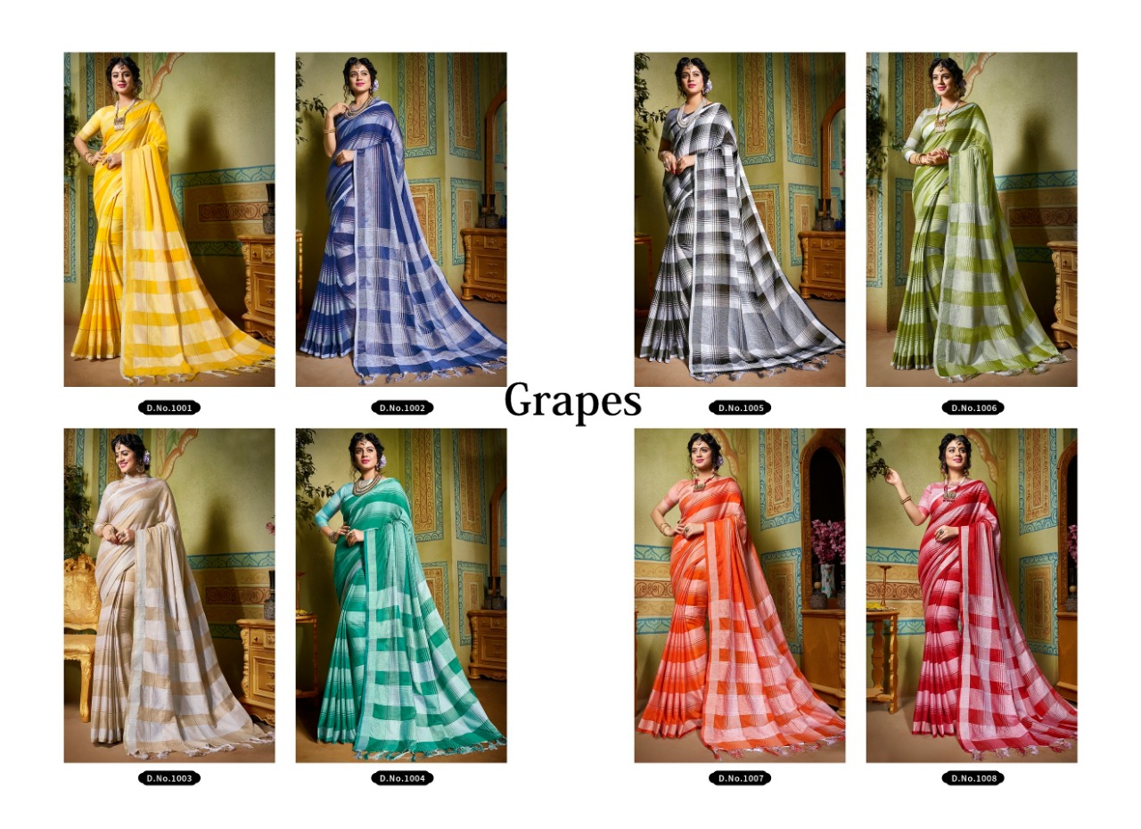 Grapes By Saroj 1001 Series Fancy Linen Cotton Handloom Printed Saree Catlog Wholesale Dealer And Supplier Surat
