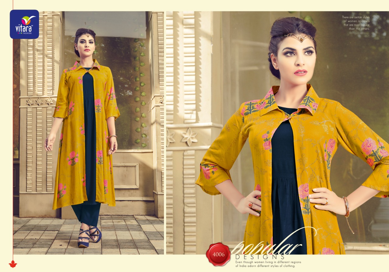 Buy Online Gratel By Vitara Fashion 4001 Series Fancy Reyon Kurti Catlog Wholesaler Surat 7 Pcs of Full Catalogue at Wholesale Price. Looking for Gratel By Vitara Fashion 4001 Series Fancy Reyon Kurti Catlog Wholesaler Surat Full Catalouge at Best Price? Buy Now Gratel By Vitara Fashion 4001 Series Fancy Reyon Kurti Catlog Wholesaler Surat at Wholesale Rate of Rs 5565 with Total 7 Pcs from authroized dealer and supplier of Brand. Cost of Each piece is just only Rs 795 which is very low and affordable price to resale the product in your retail store ,This is Surat based Wholesale Supplier & Dealer of Brand. Click on Brand name to Know more about Brand's products.Call or Whatsapp on 9898838984 for booking or enquiry