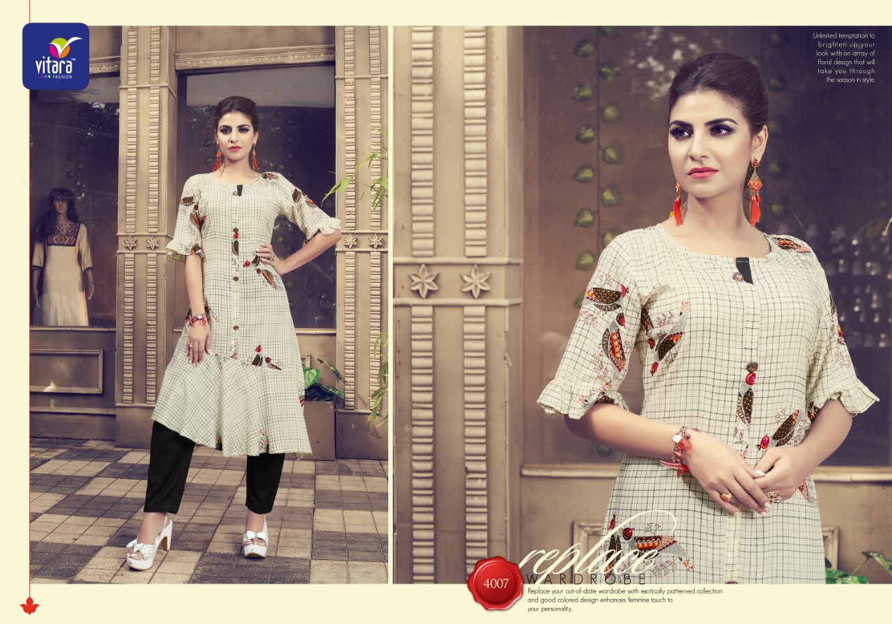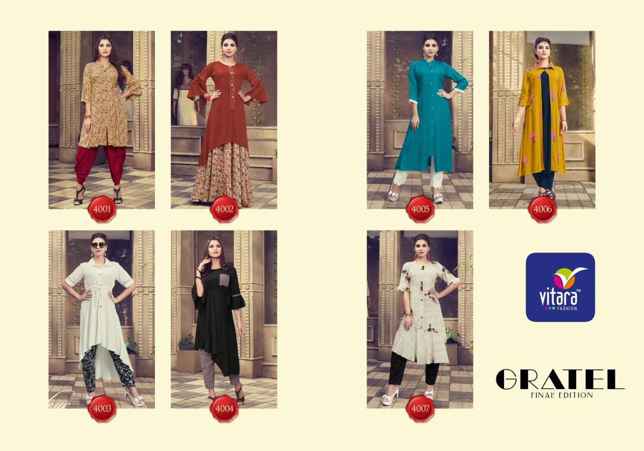 Gratel By Vitara Fashion 4001 Series Fancy Reyon Kurti Catlog Wholesaler Surat