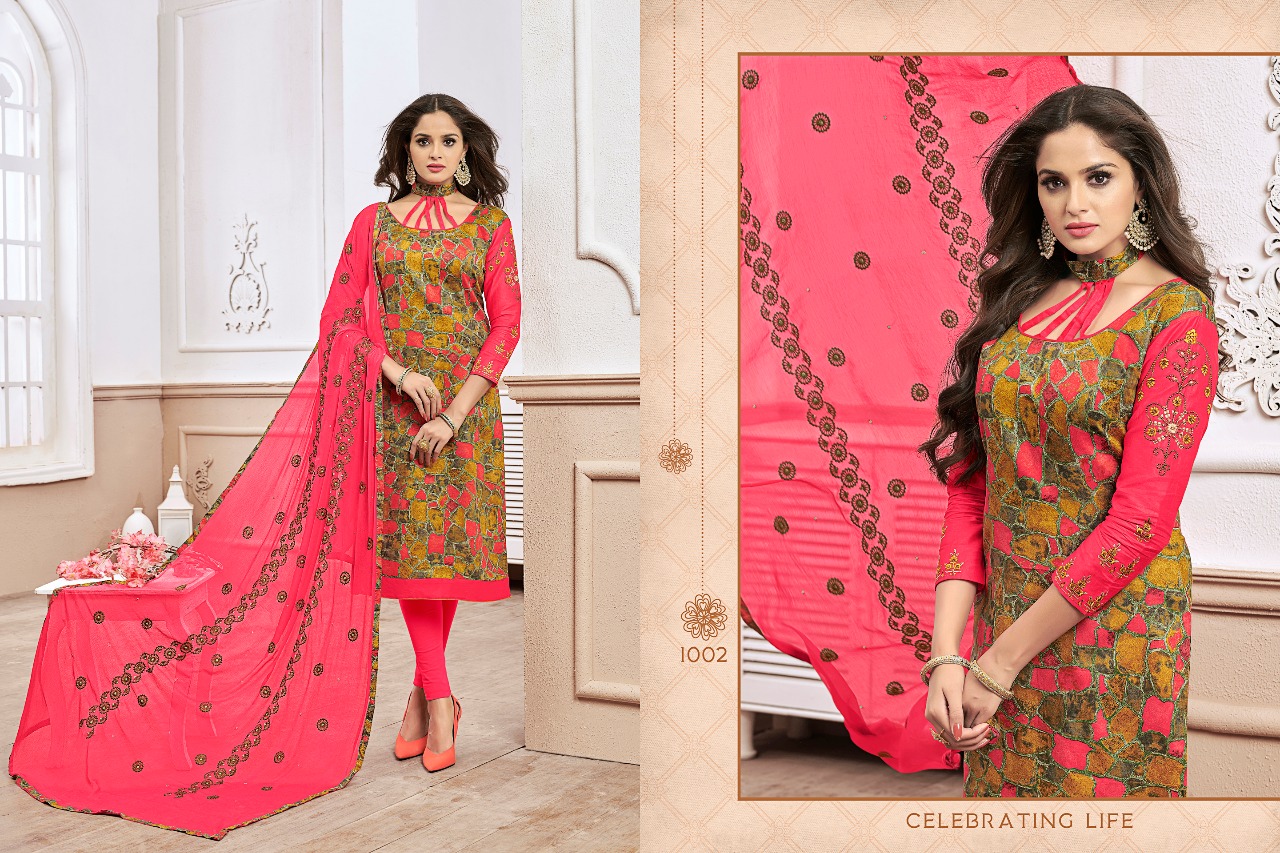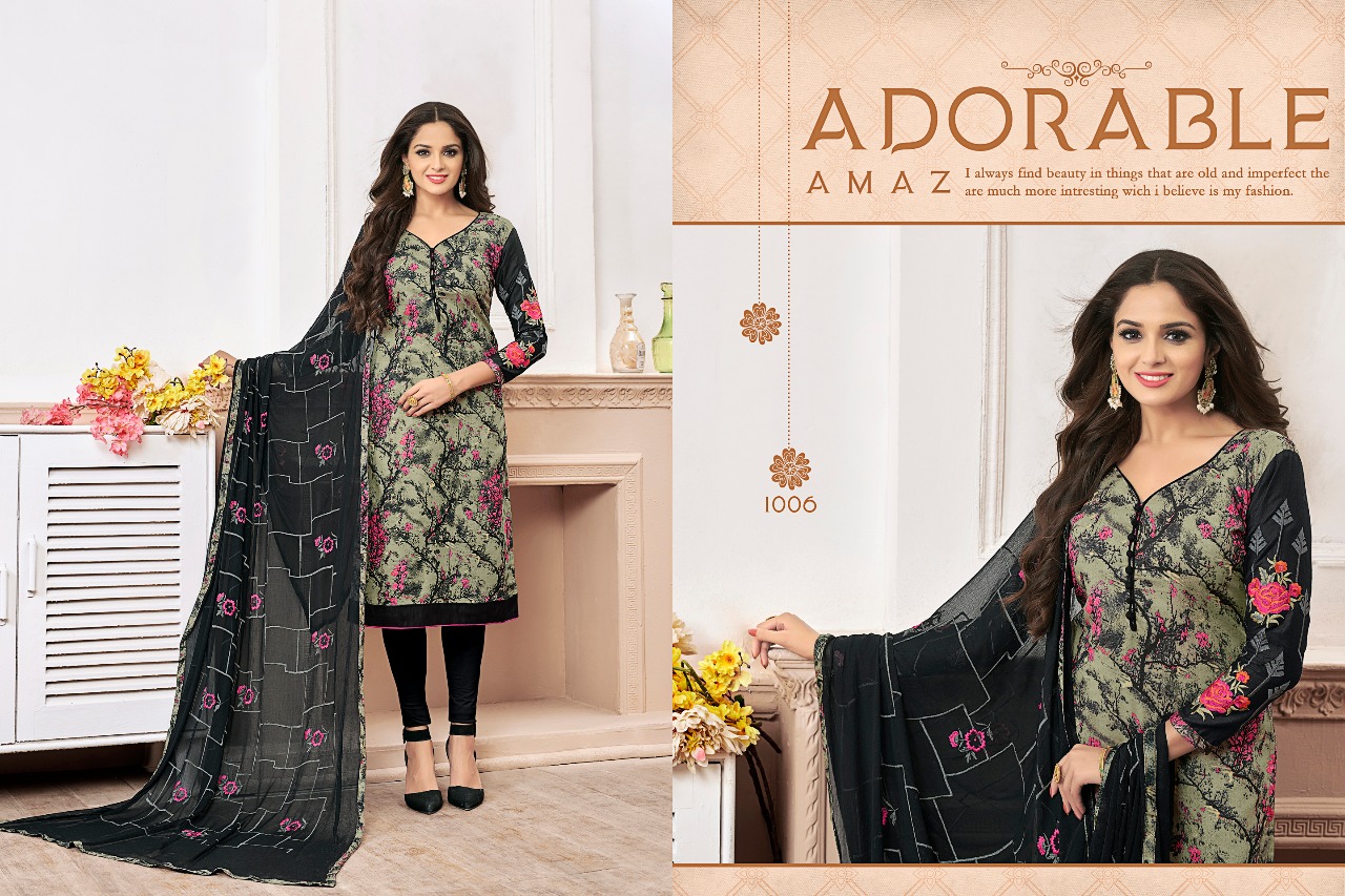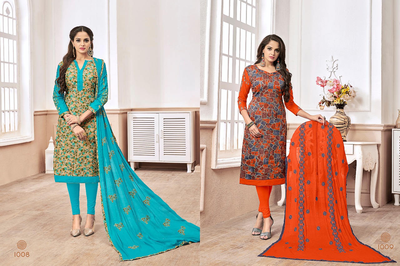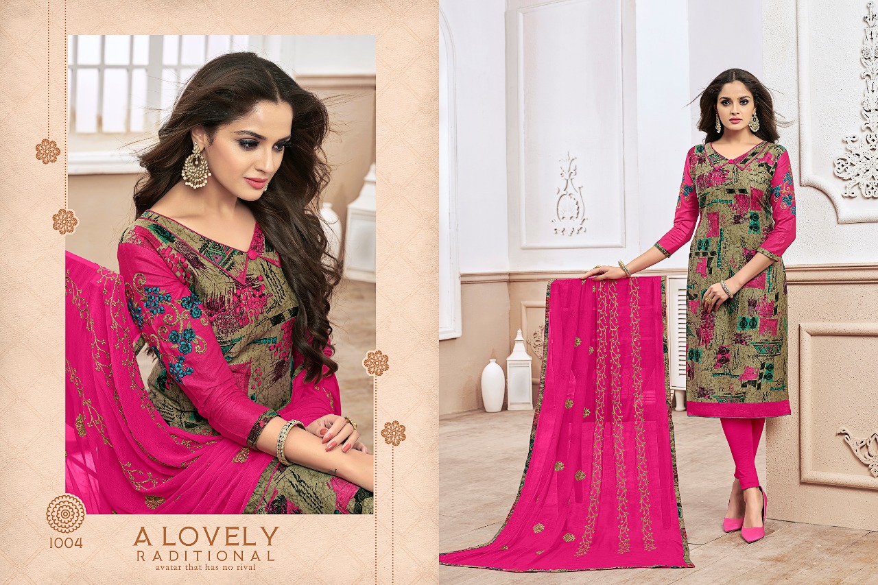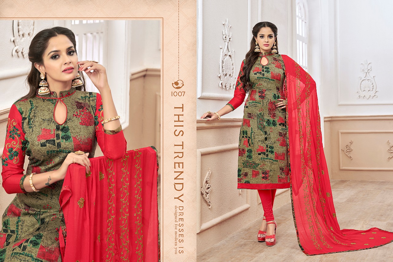 " GREEN CILL" by Ravi Cretion we launched our most valuable smart satin cotton print with slive work ?Quality Fabrics.... ?Best Designs.... ?Latest Colours.... ?Rich Combinations.... @ unbelievable price, Fabric Details:- ? Top:- Satin cotton print slive satin dyed with malti work ? Bot :- Cotton cut:-2.25mtr app Rate :- 5?5?1? + Gst ? Bot :- Cotton cut - 3.00 mitr app. Rate :- 5?6?5?+ Gst ??Dup : naznin with malti work 2.25 mtr app Designs:- 1?0? Have a look to this awesome catalogue & book your orders...and thanks for ur support hope u always with us. Always with you...... Nitya nx |