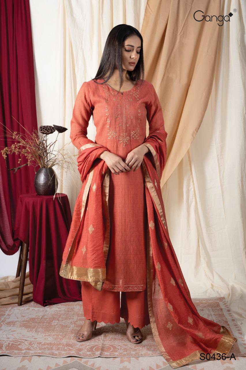 *GANGA* GREETHA 436 *TOP-* FINEST WOVEN SOLID WITH EMBROIDERY AND HANDWORK *BOTTOM-* PREMIUM SATIN *DUPATTA-* FINEST BANARSI JACQUARD |