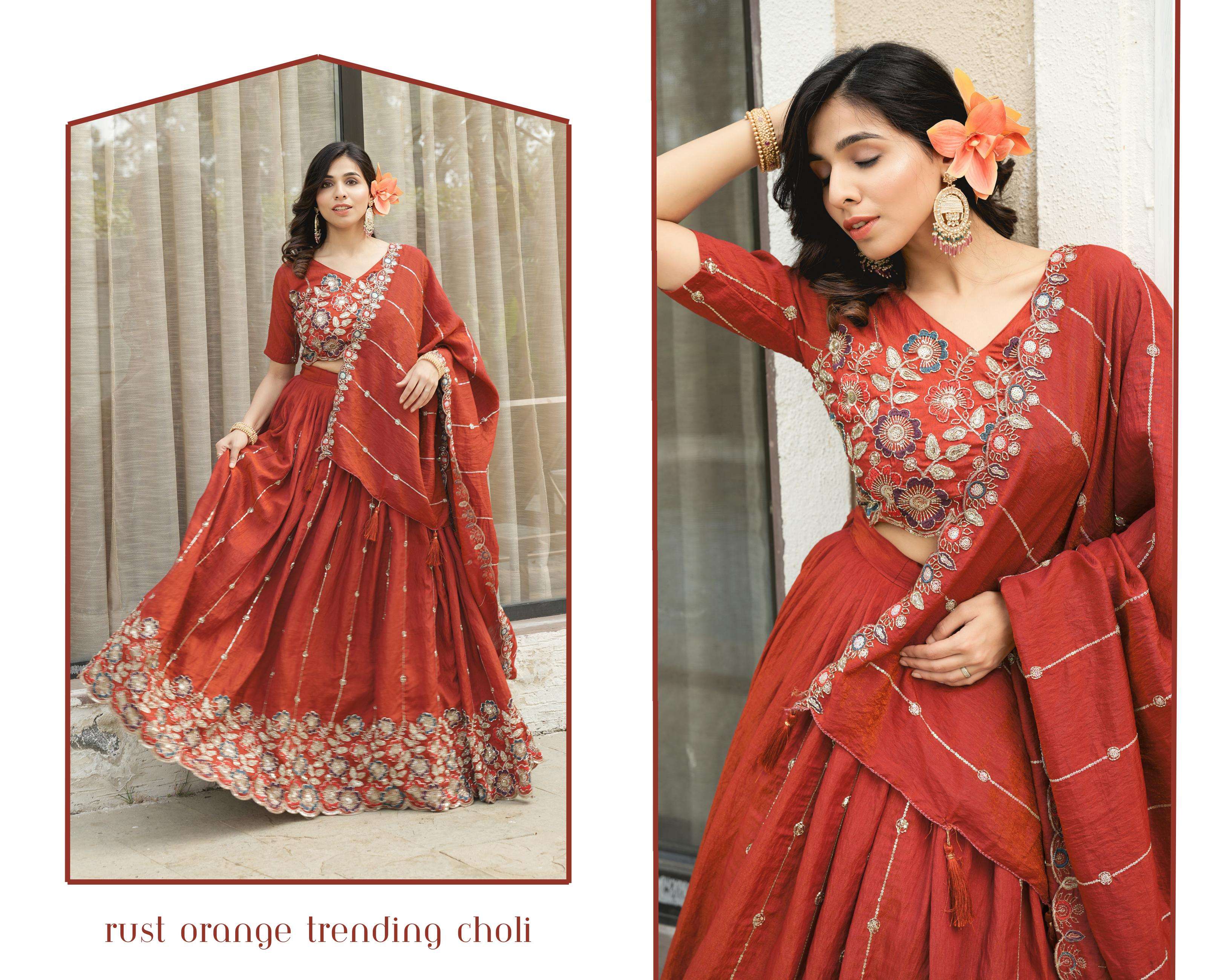 *_ Rust Orange Embroidery Lehenga_*👜 ✨