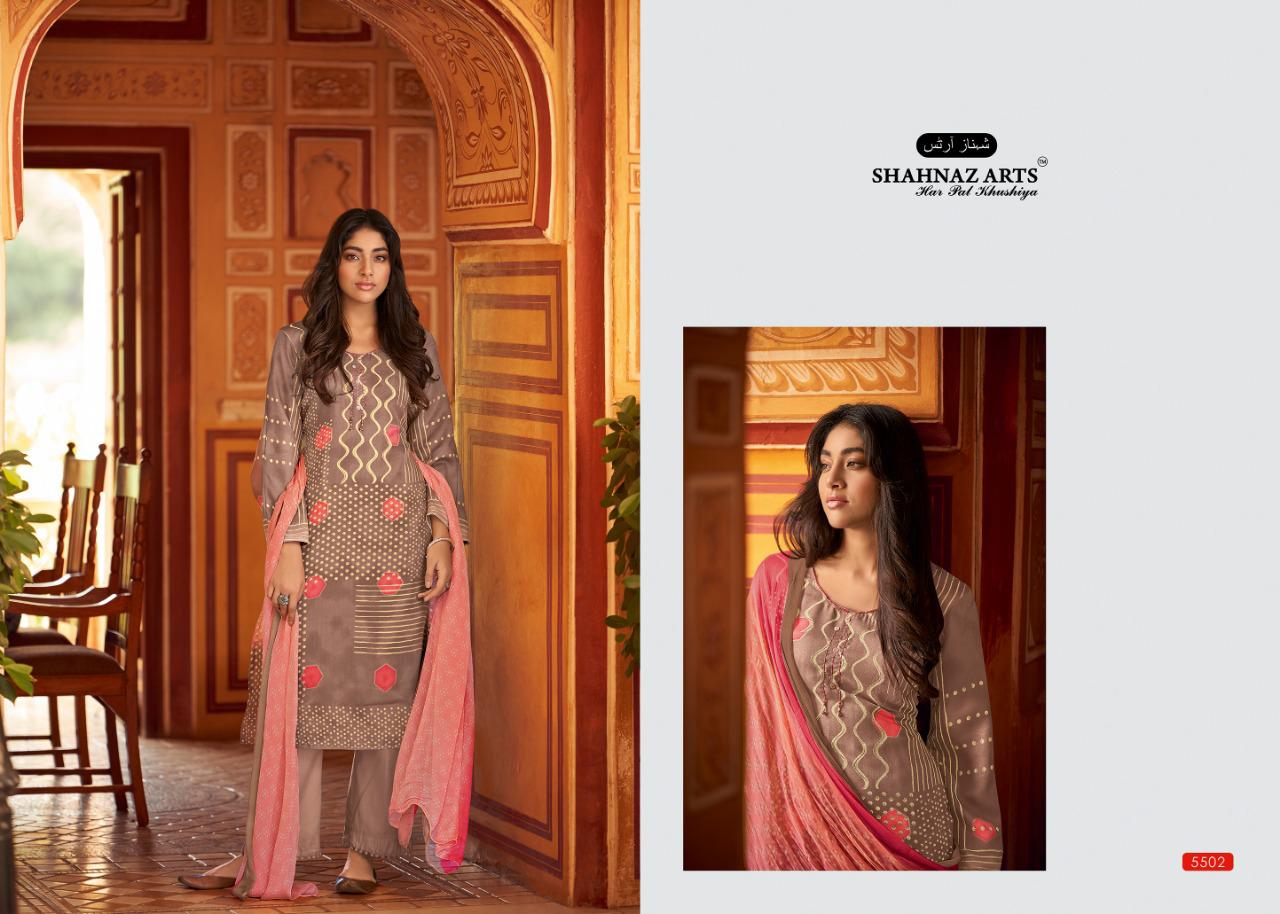 Buy Online Gul Bahar By Shahnaz Arts Pashmina Suits Wholesale Supplier Gujarat 8 Pcs of Full Catalogue at Wholesale Price. Looking for Gul Bahar By Shahnaz Arts Pashmina Suits Wholesale Supplier Gujarat Full Catalouge at Best Price? Buy Now Gul Bahar By Shahnaz Arts Pashmina Suits Wholesale Supplier Gujarat at Wholesale Rate of Rs 5592 with Total 8 Pcs from authroized dealer and supplier of SHAHNAZ ARTS Brand. Cost of Each piece is just only Rs 699 which is very low and affordable price to resale the product in your retail store ,This is Surat based Wholesale Supplier & Dealer of SHAHNAZ ARTS Brand. Click on Brand name to Know more about SHAHNAZ ARTS Brand's products.Call or Whatsapp on 9898838984 for booking or enquiry
