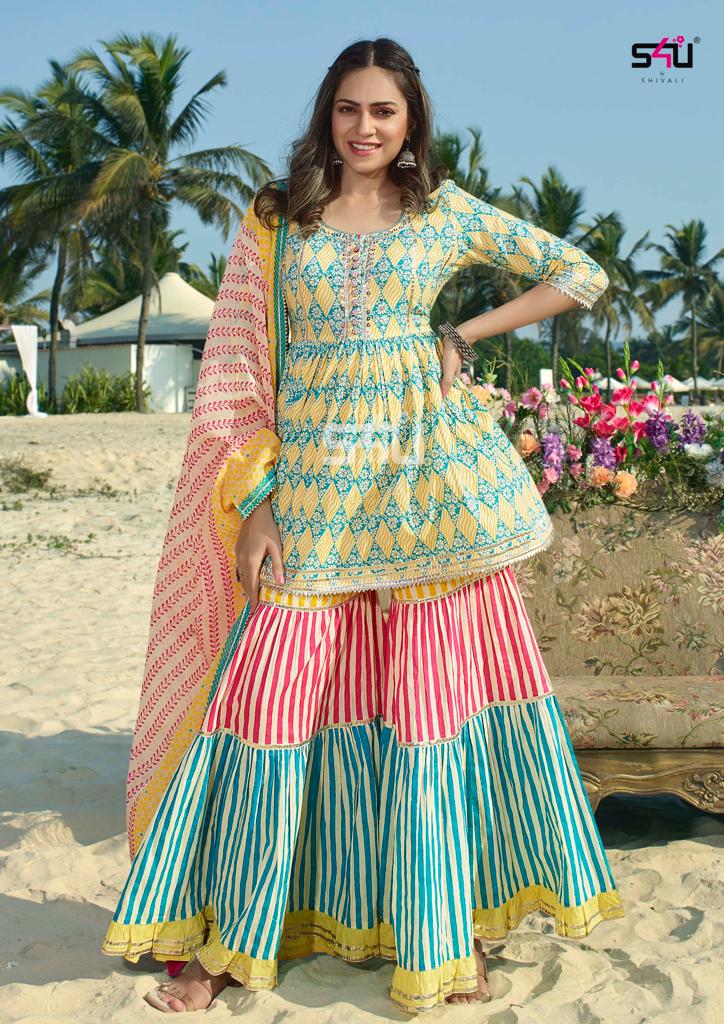 Single available Whether you are looking for summer festive or intimate gatherings, the newest launch from S4U , Â?*GULABO vol.04* Â? gives the perfect mood & vibe of summer. Look like the most coordinated one this season in these fresh floral sharara sets! Fabric :- Cotton and Rayon Singles available Sizes :- M-L-Xl-2xl Note- colors may vary slightly due to the light effect during photography. **Dispatching__ starts in 5 to 7 days*?? 100+single |